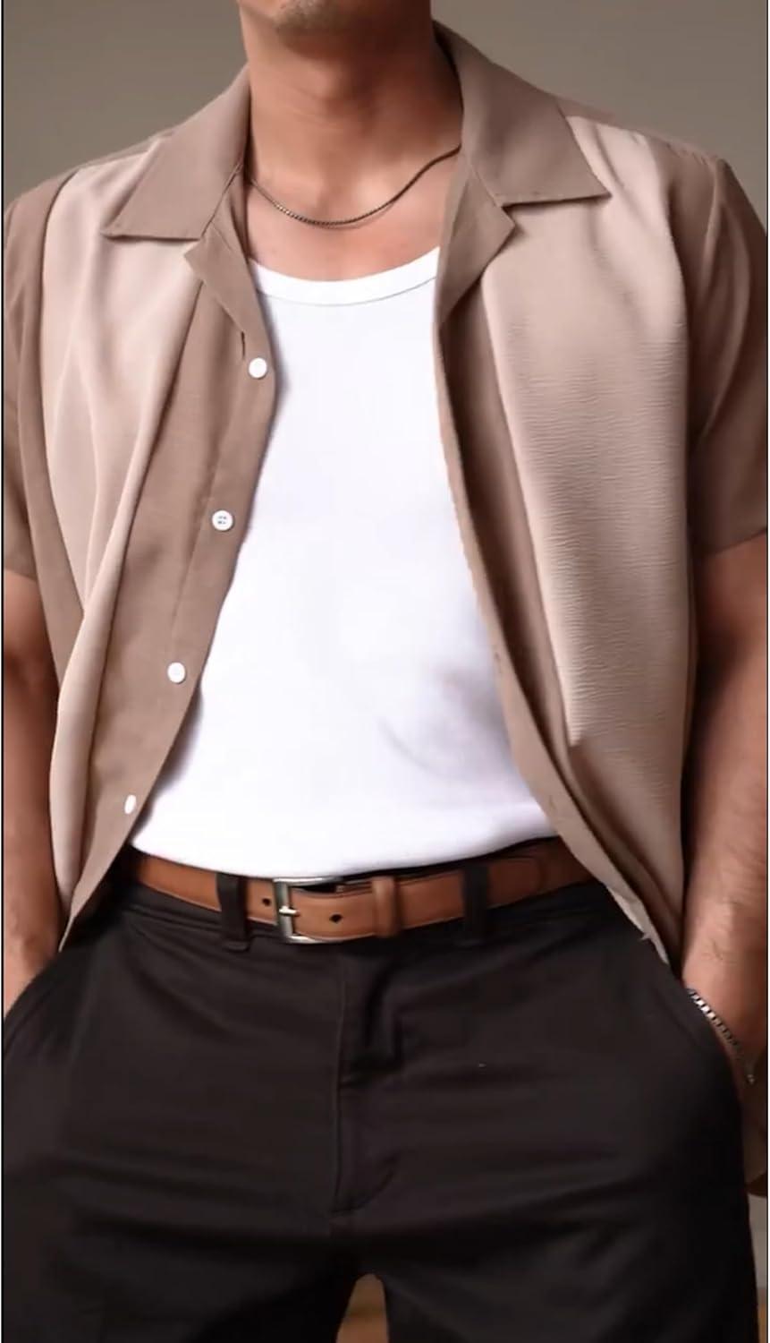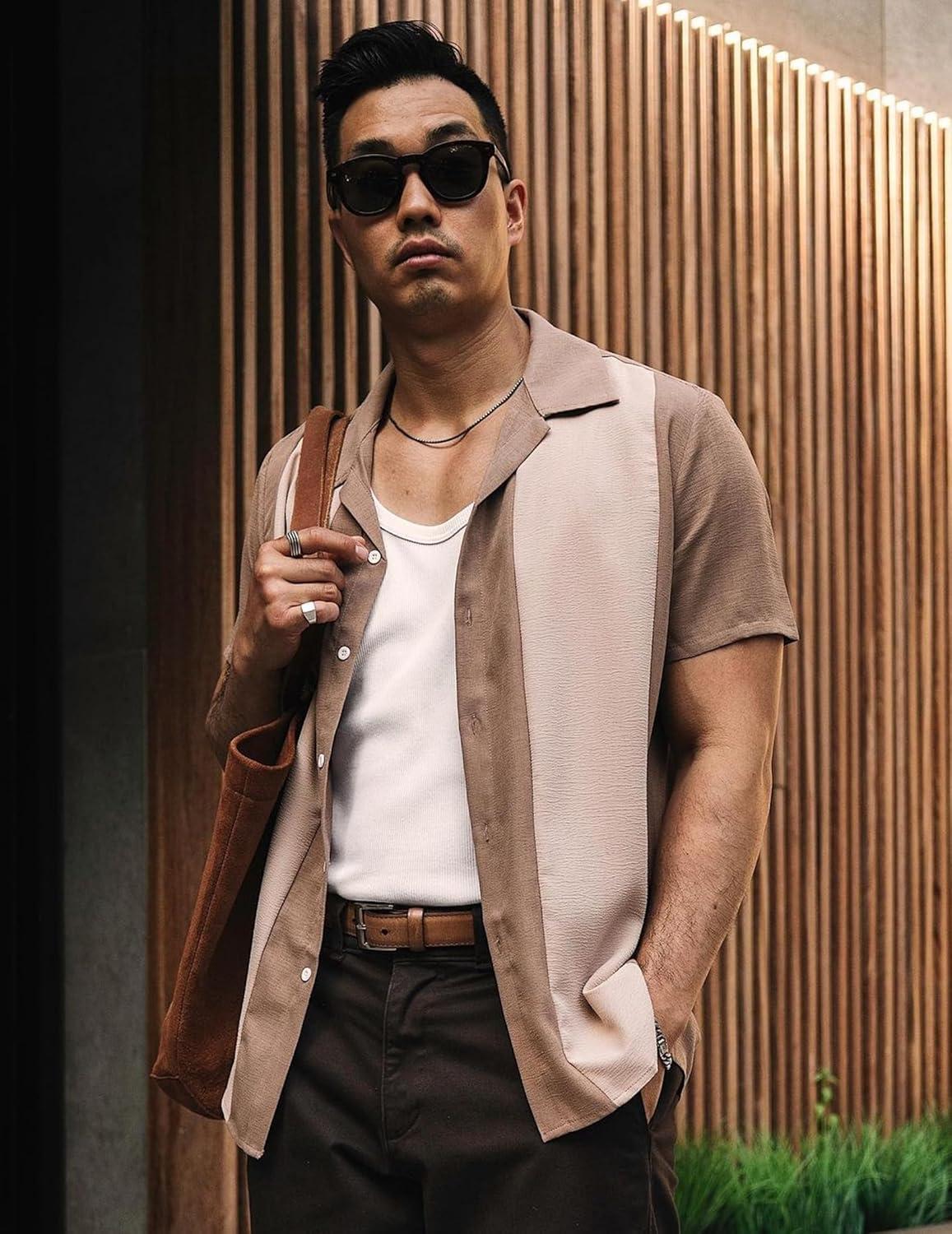 COOFANDY Men’s Vintage Bowling Shirt Short Sleeve Button Down Summer Cuba Beach Shirts(Khaki Light Khaki)
