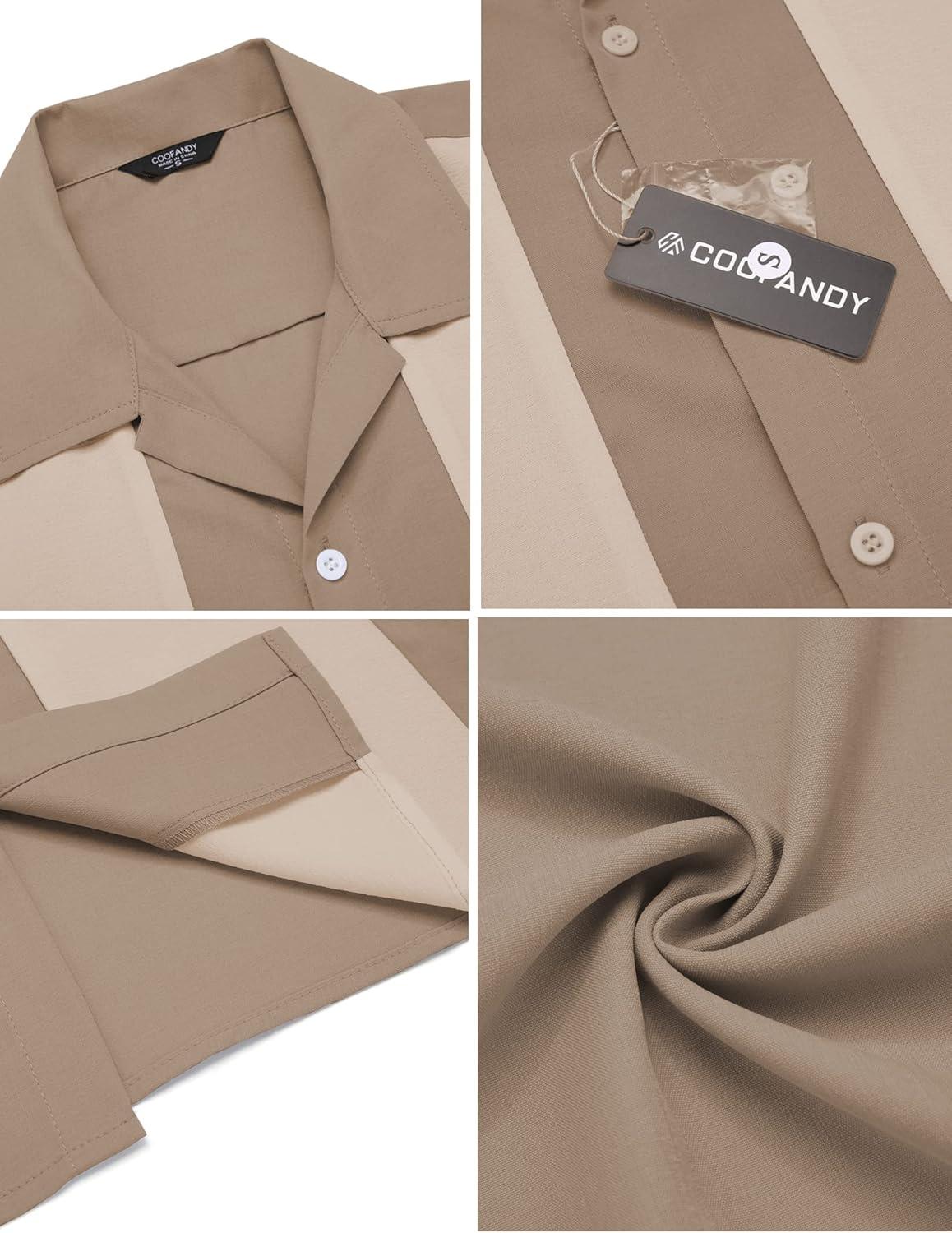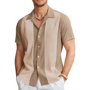 COOFANDY Men’s Vintage Bowling Shirt Short Sleeve Button Down Summer Cuba Beach Shirts(Red Light Khaki)