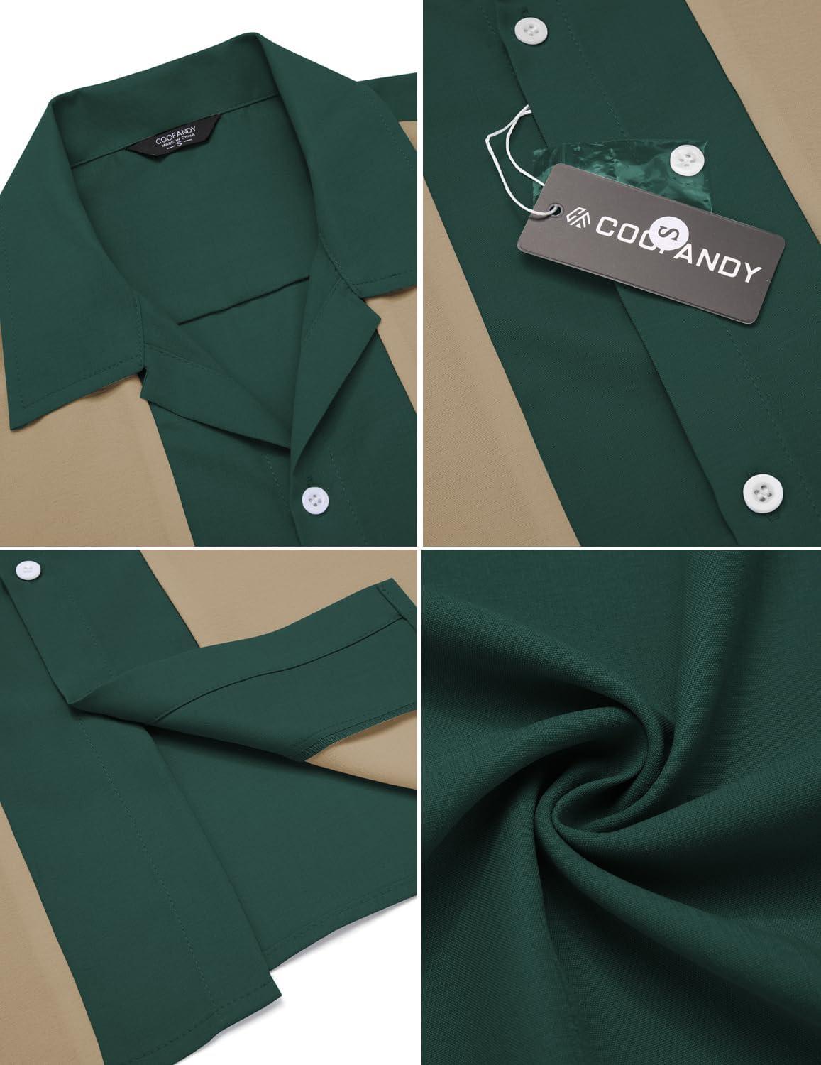 COOFANDY Men’s Vintage Bowling Shirt Short Sleeve Button Down Summer Cuba Beach Shirts(Lake Green Khaki)