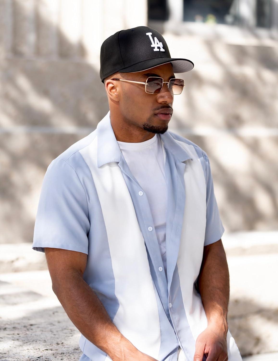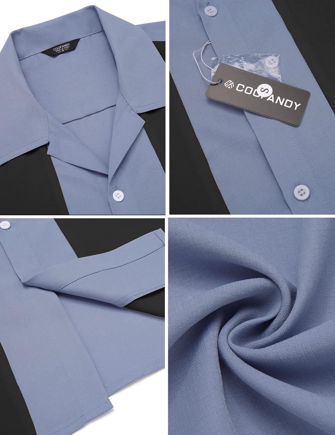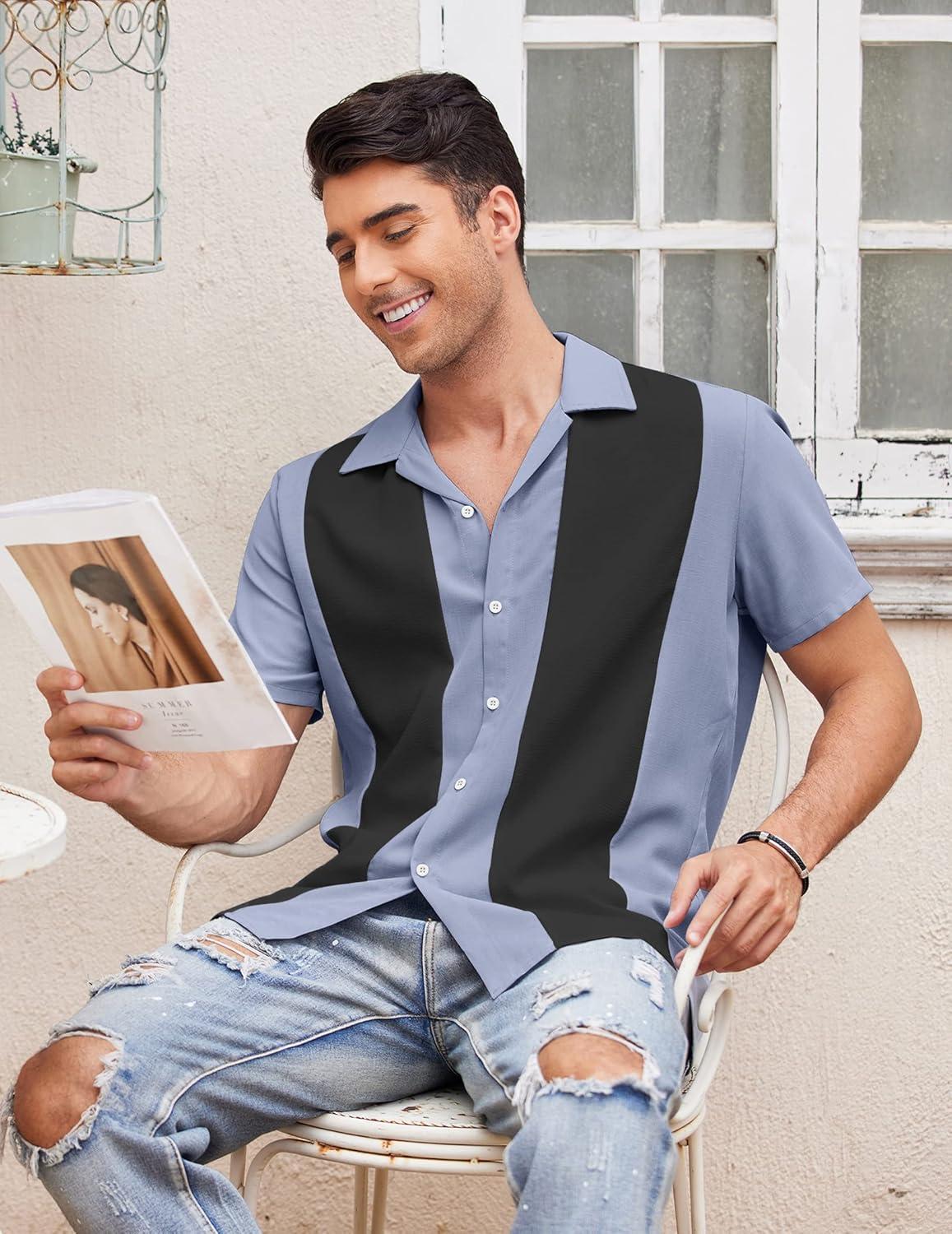 COOFANDY Men’s Vintage Bowling Shirt Short Sleeve Button Down Summer Cuba Beach Shirts(Light Blue Black)