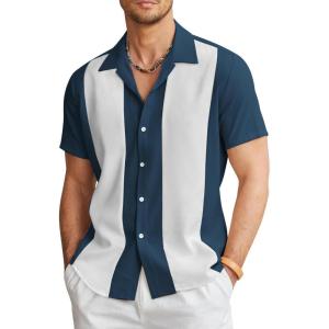 COOFANDY Men’s Vintage Bowling Shirt Short Sleeve Button Down Summer Cuba Beach Shirts(Blue White)