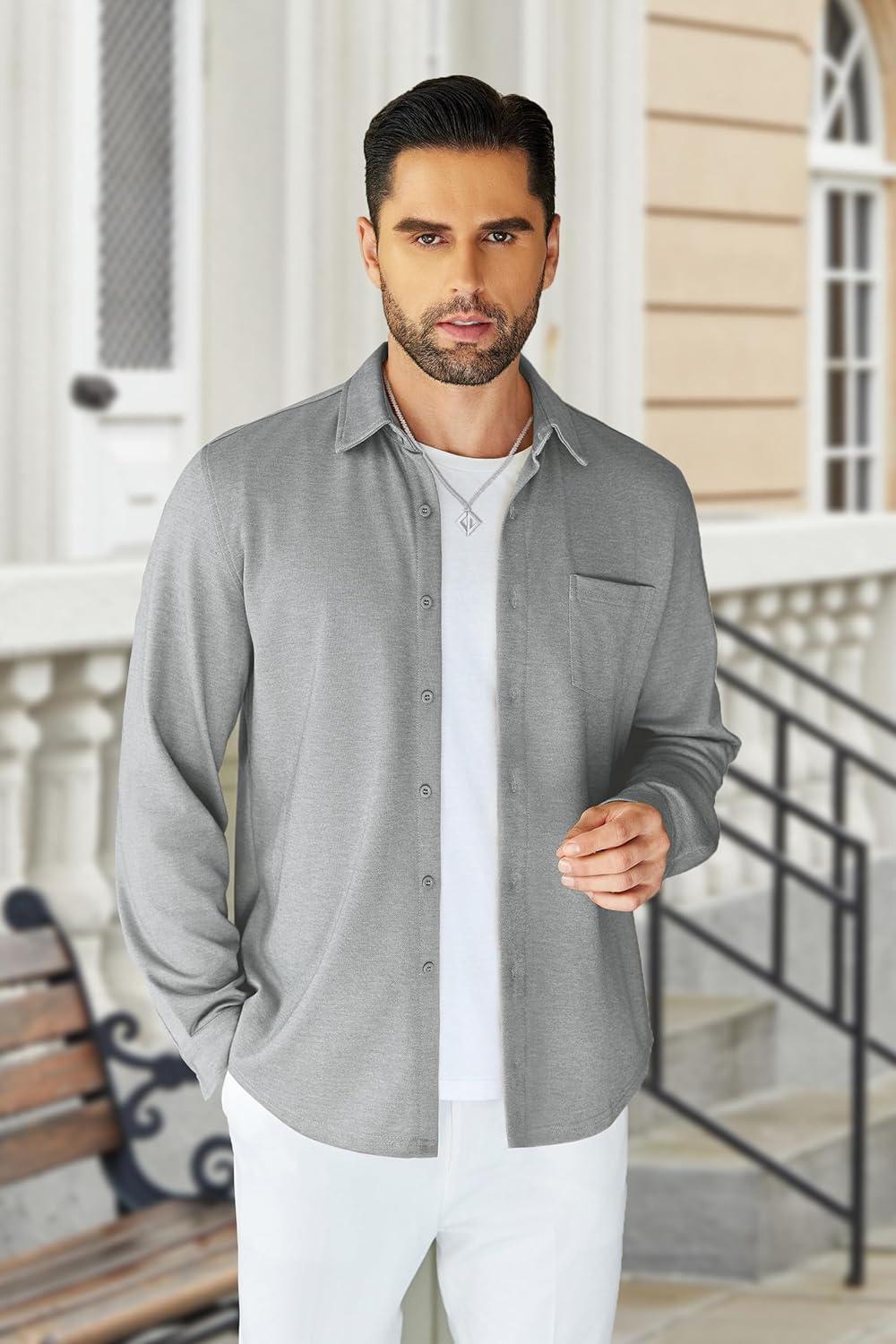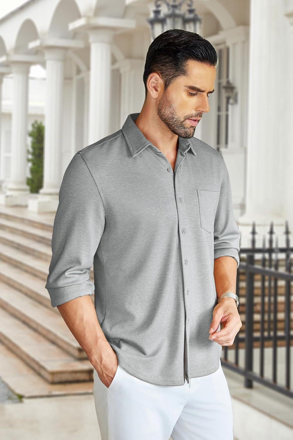 • COOFANDY Men’s Wrinkle Free Shirt Casual Button Down Long Sleeve Dress Shirts(Dark Grey)