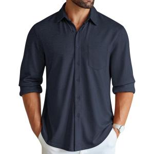 • COOFANDY Men’s Wrinkle Free Shirt Casual Button Down Long Sleeve Dress Shirts(Dark Blue)