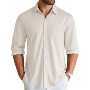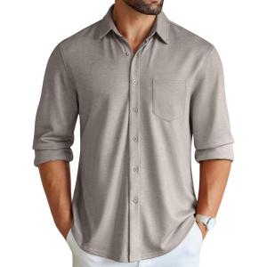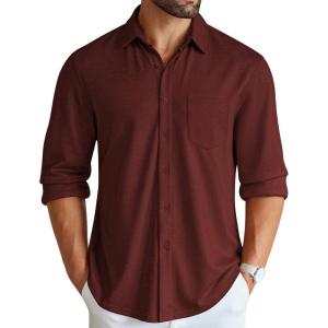 • COOFANDY Men’s Wrinkle Free Shirt Casual Button Down Long Sleeve Dress Shirts(Brown)