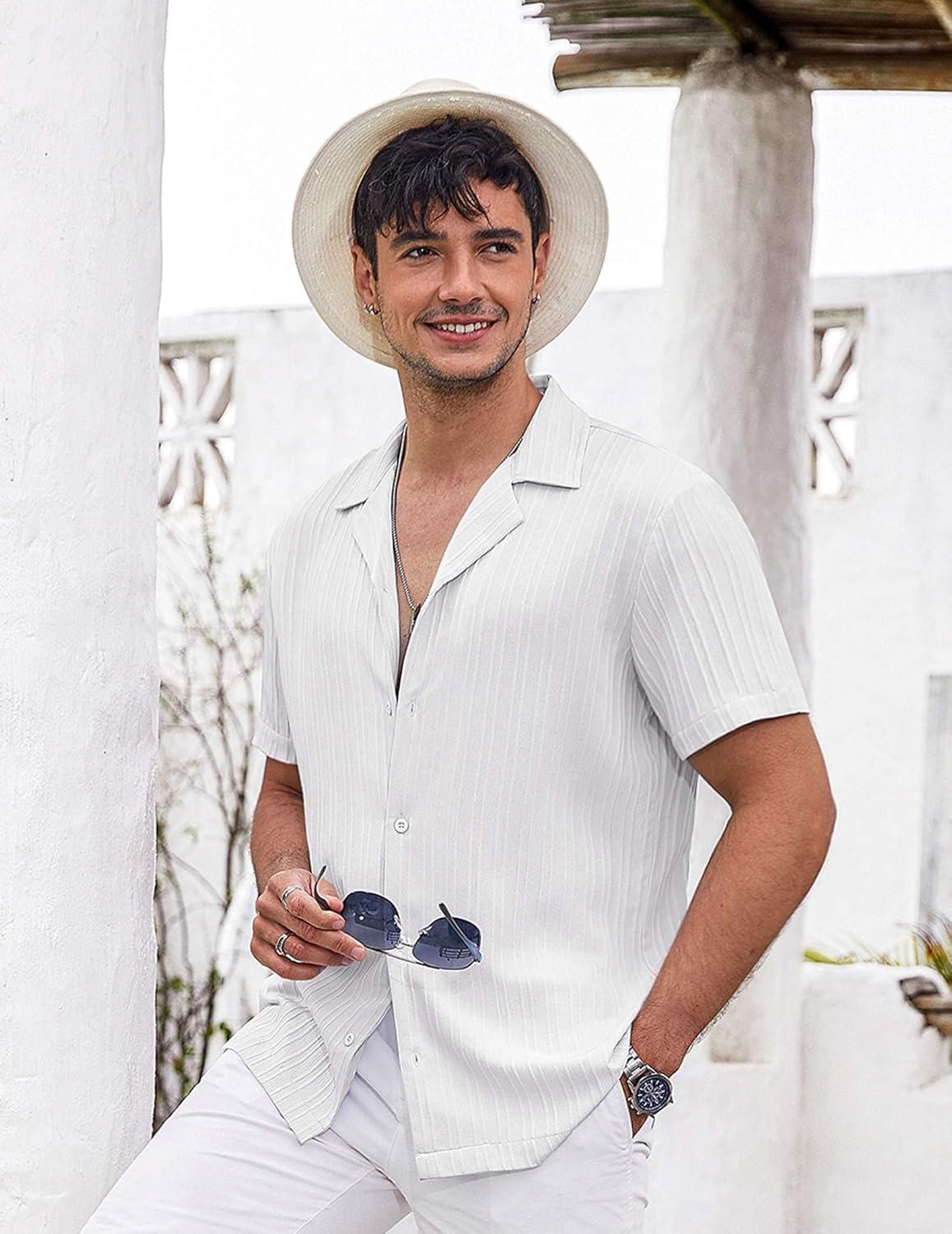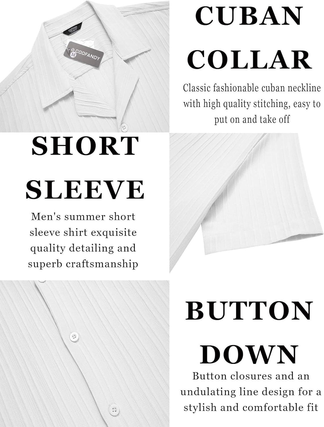 COOFANDY Mens 2025 Fashion Textured Shirts Short Sleeve Summer Beach Shirt Casual Button Down Shirts(White)