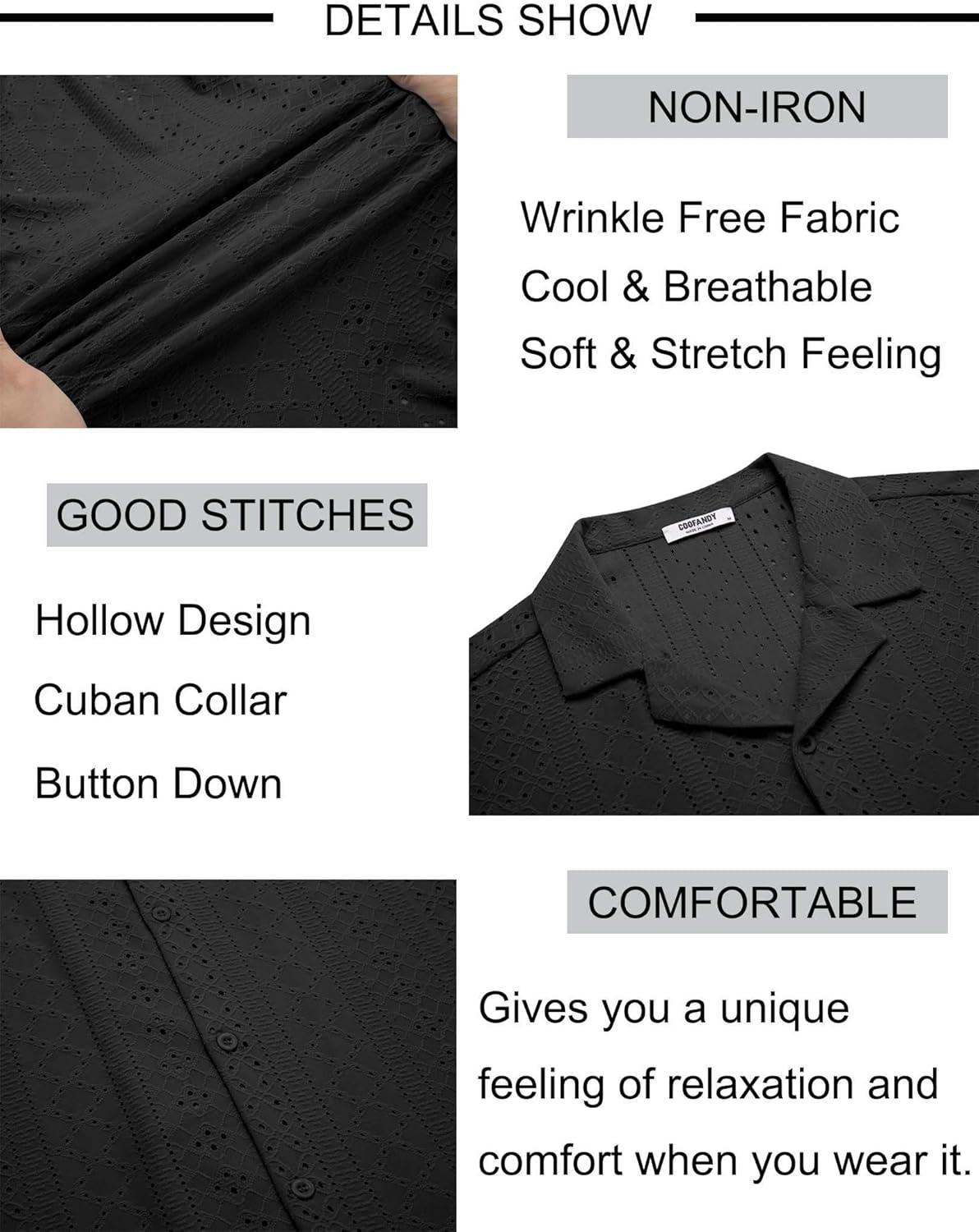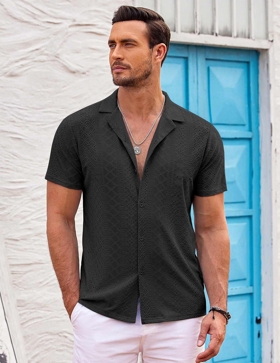 COOFANDY Mens Beach Shirt Short Sleeve Button Down Shirts Casual Cuban Collared Summer Vacation Tropical Shirts(Black)