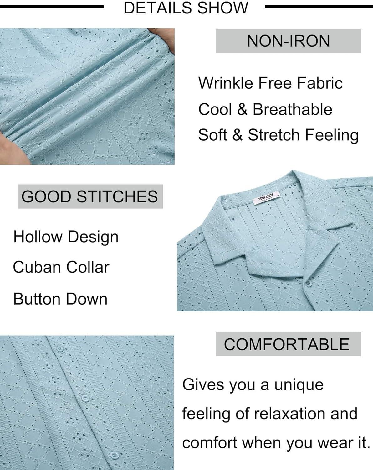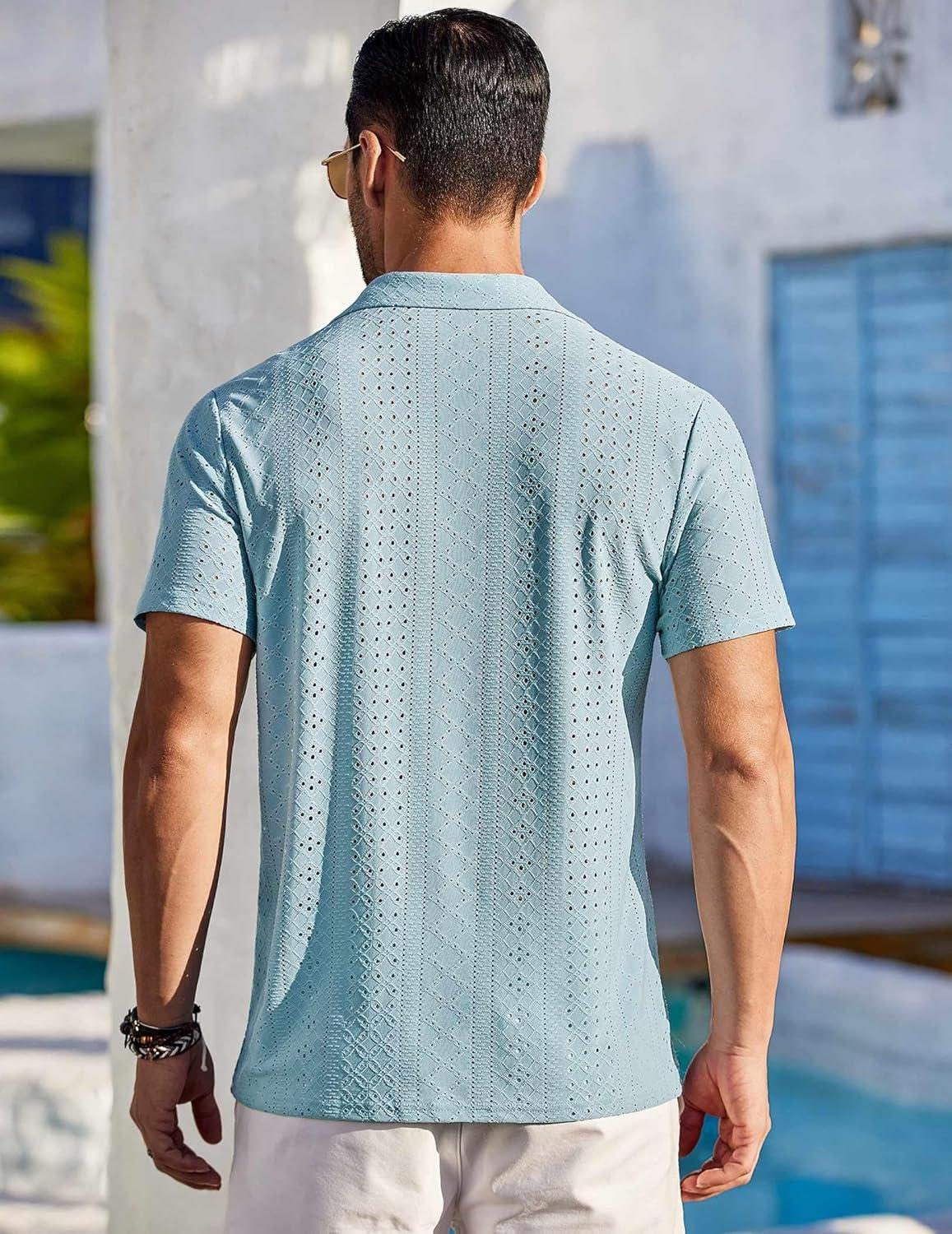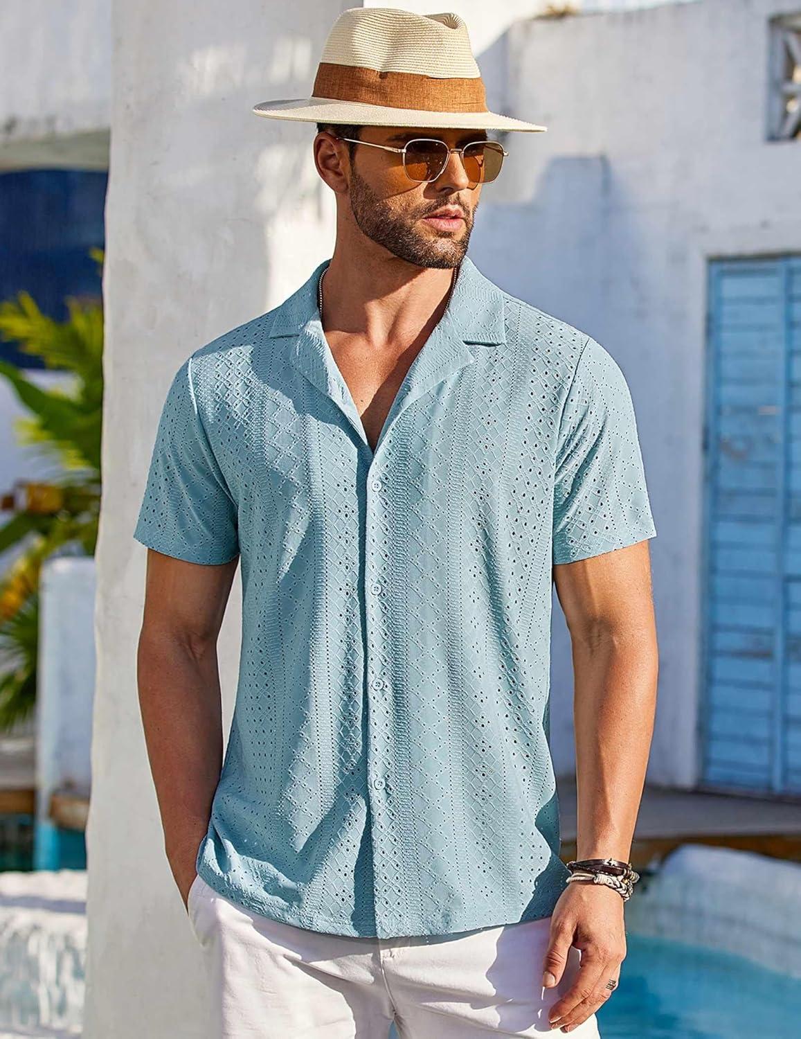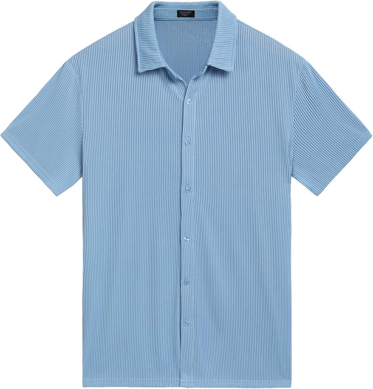 COOFANDY Mens 2025 Fashion Textured Shirts Short Sleeve Summer Beach Shirt Casual Button Down Shirts(Sky Blue)