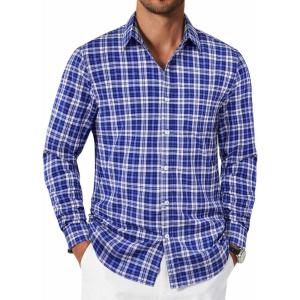 COOFANDY Mens Button Down Shirt Cotton Long Sleeves Dress Shirt Wrinkle Free Casual Plaid Shirt(Blue Gingham)