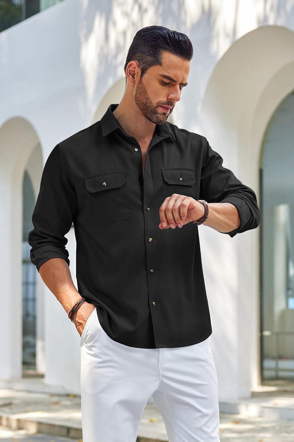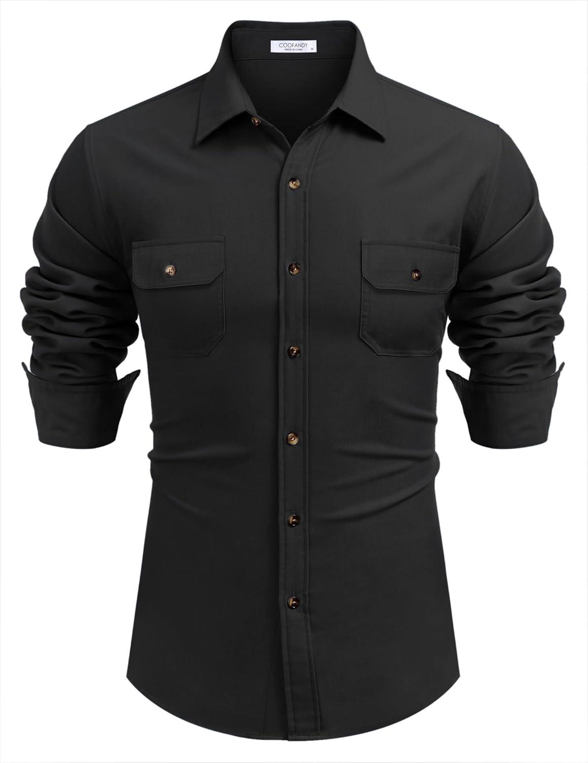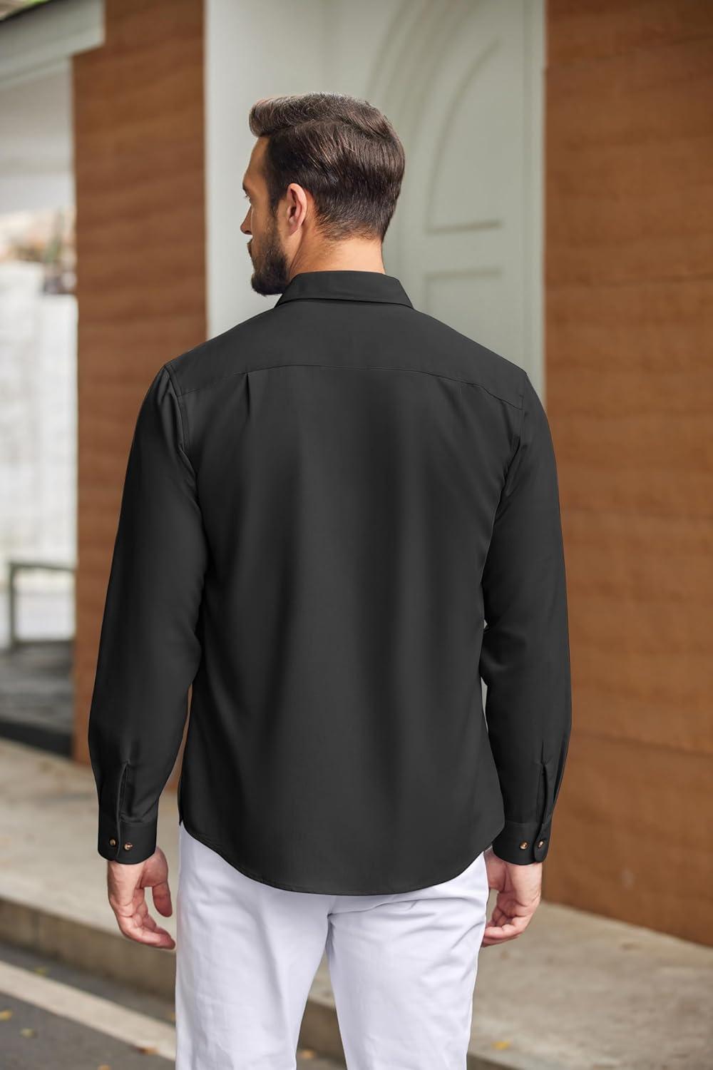 COOFANDY Mens Casual Button Down Shirts Long Sleeve Wrinkle-Free Shirt Lightweight Shirt Jacket(Black)