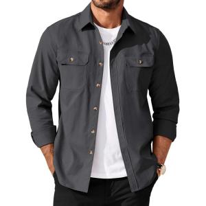 COOFANDY Mens Casual Button Down Shirts Long Sleeve Wrinkle-Free Shirt Lightweight Shirt Jacket(Dark Gray)