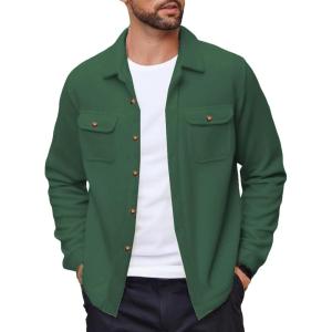 COOFANDY Mens Casual Button Down Shirts Long Sleeve Wrinkle-Free Shirt Lightweight Shirt Jacket(Green)