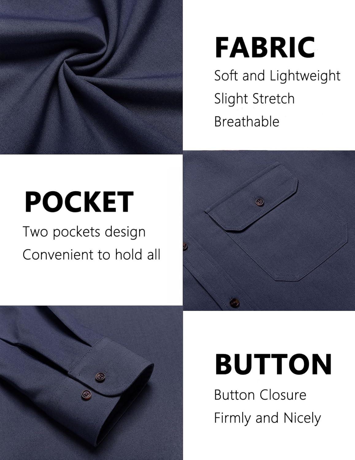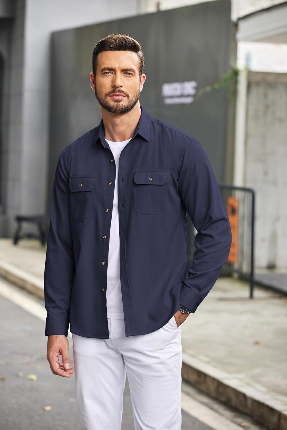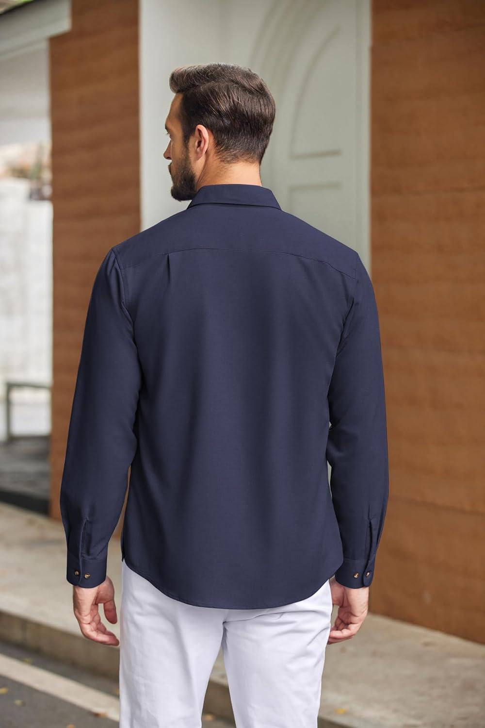 COOFANDY Mens Casual Button Down Shirts Long Sleeve Wrinkle-Free Shirt Lightweight Shirt Jacket(Navy Blue)