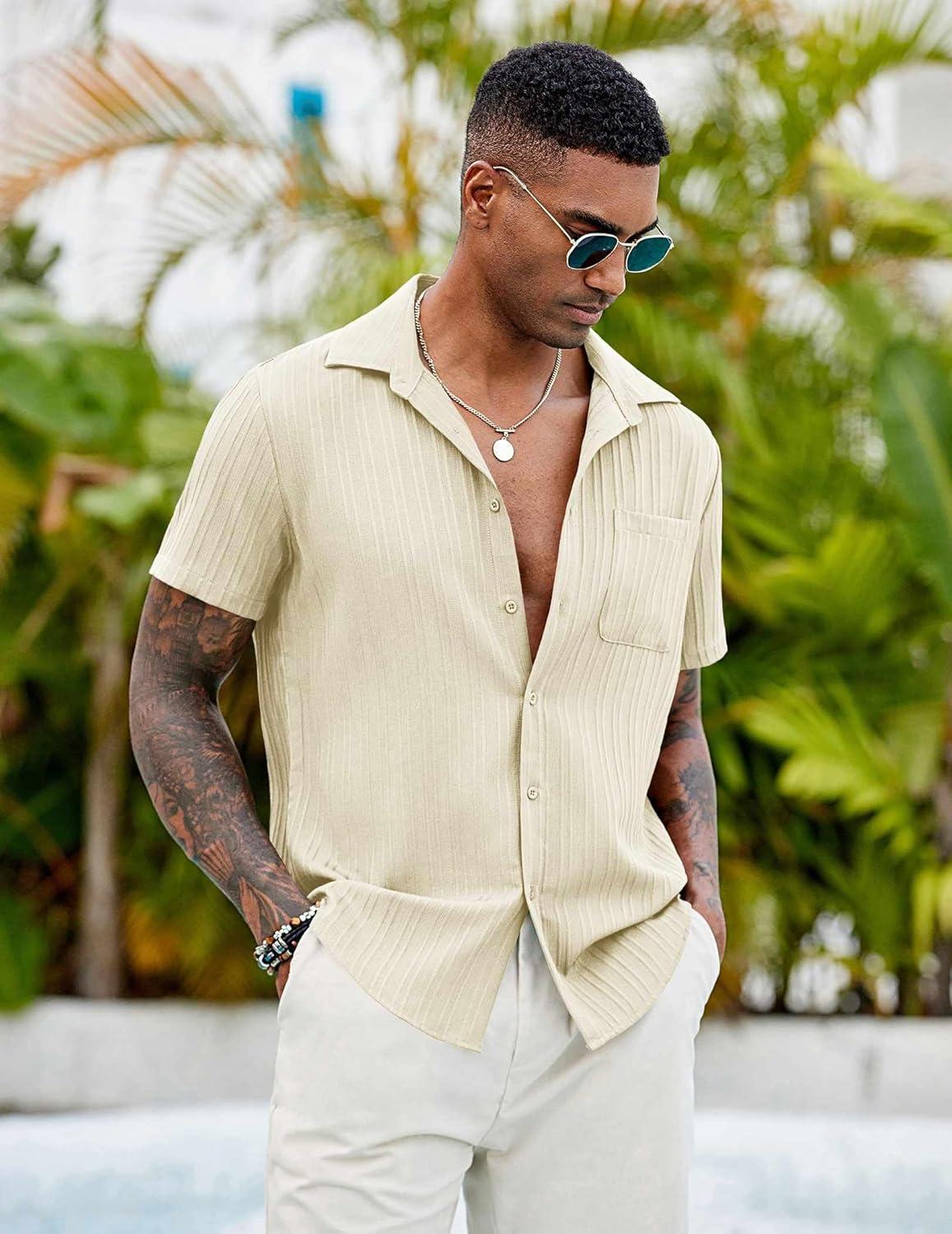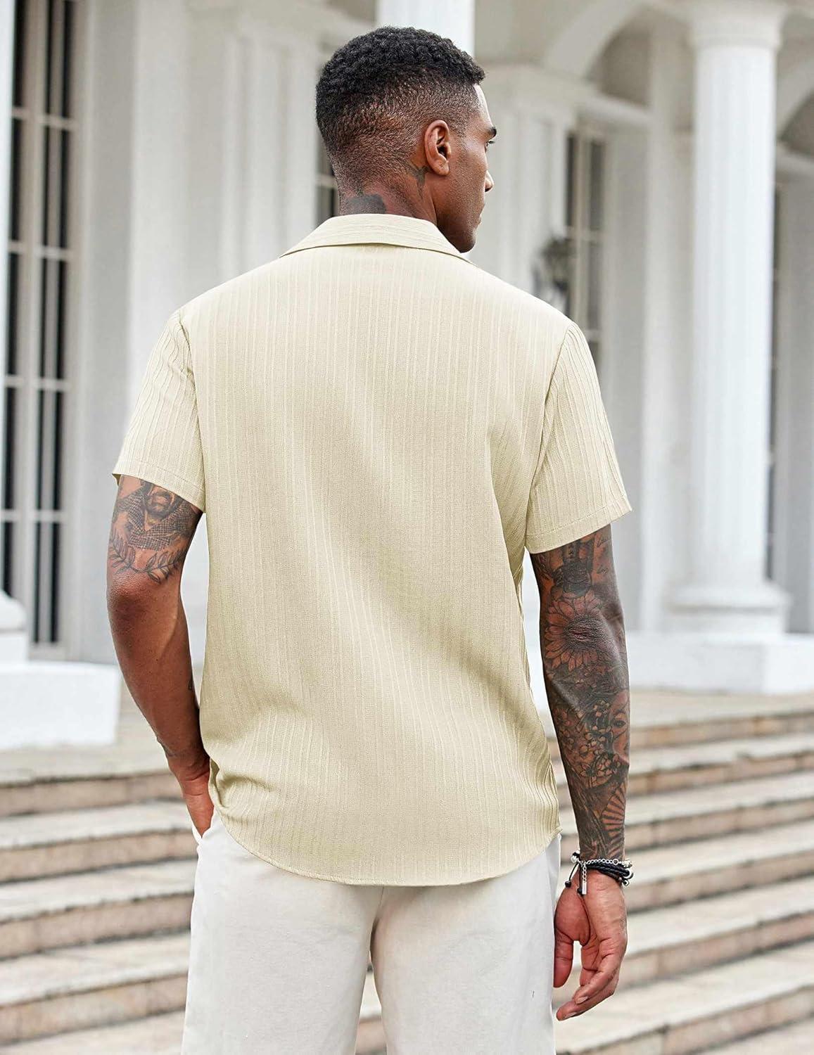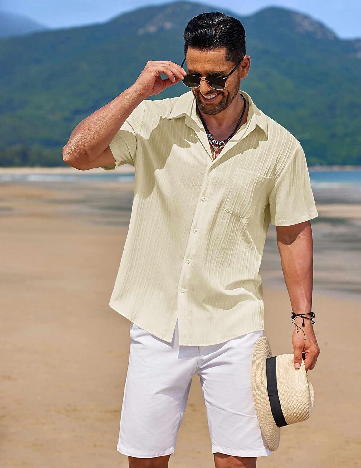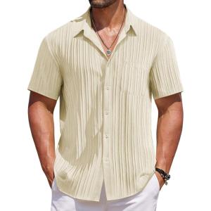 COOFANDY Mens Casual Button Down Shirts Short Sleeve Textured Shirt Summer Beach Shirts for Men(Beige)