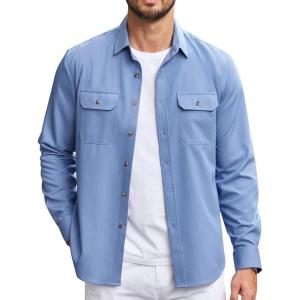 COOFANDY Mens Casual Button Down Shirts Long Sleeve Wrinkle-Free Shirt Lightweight Shirt Jacket(Light Blue)