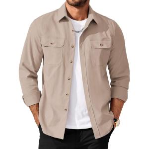 COOFANDY Mens Casual Button Down Shirts Long Sleeve Wrinkle-Free Shirt Lightweight Shirt Jacket(Light Khaki)