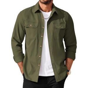 COOFANDY Mens Casual Button Down Shirts Long Sleeve Wrinkle-Free Shirt Lightweight Shirt Jacket(Olive Green)
