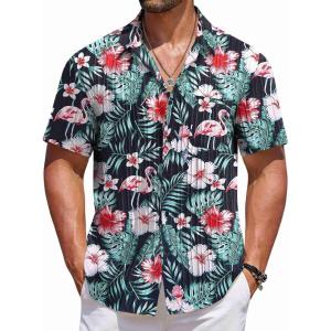 COOFANDY Mens Casual Button Down Shirts Short Sleeve Textured Shirt Summer Beach Shirts for Men(Black-flowers)