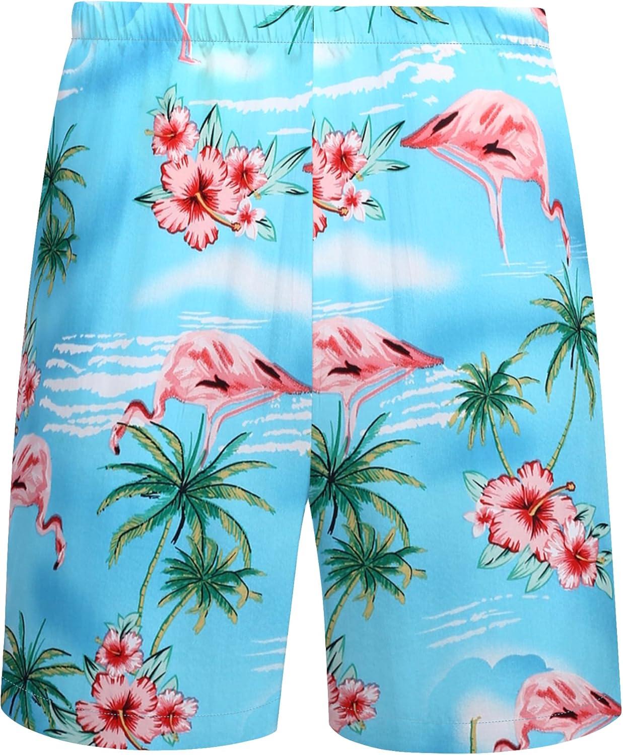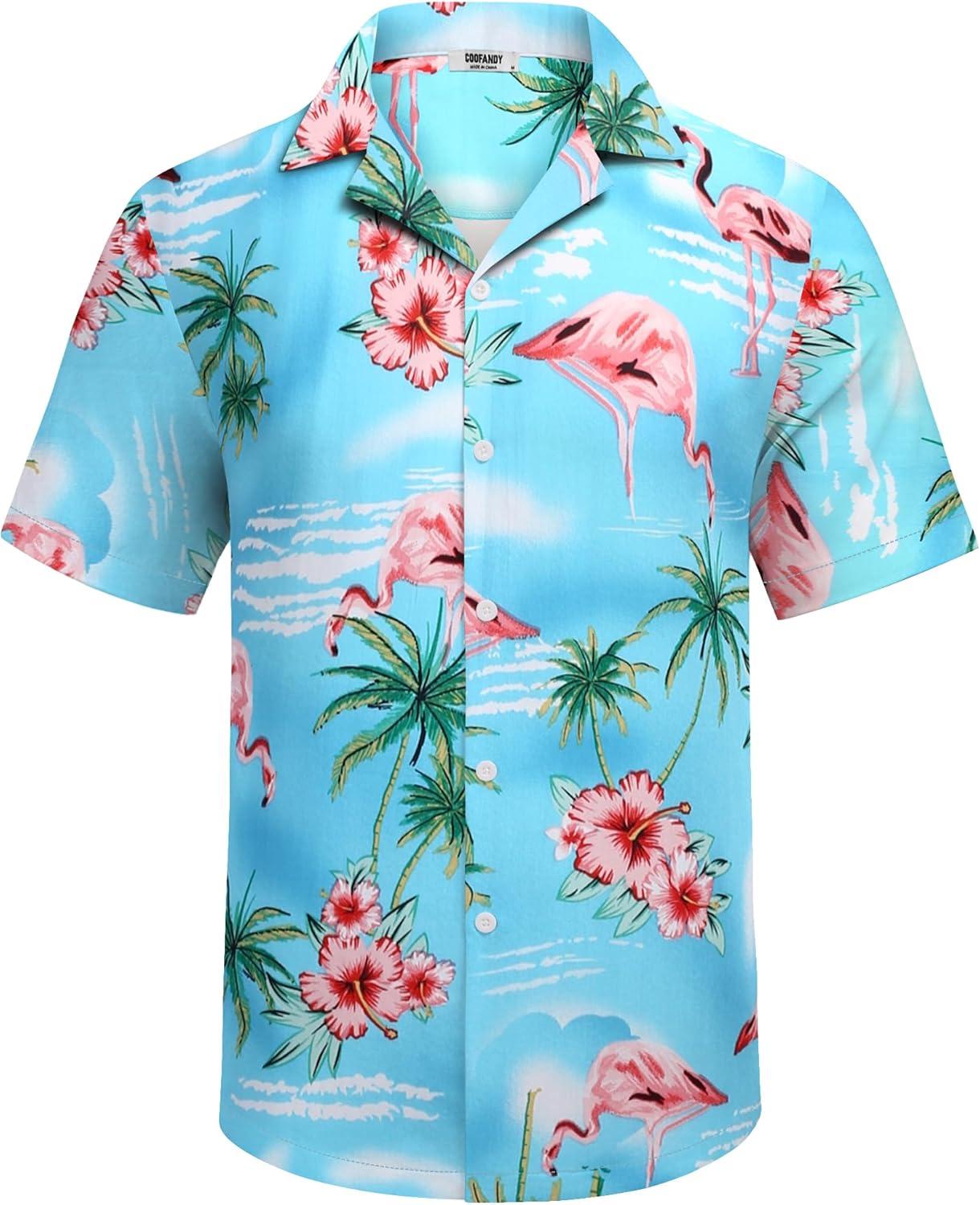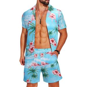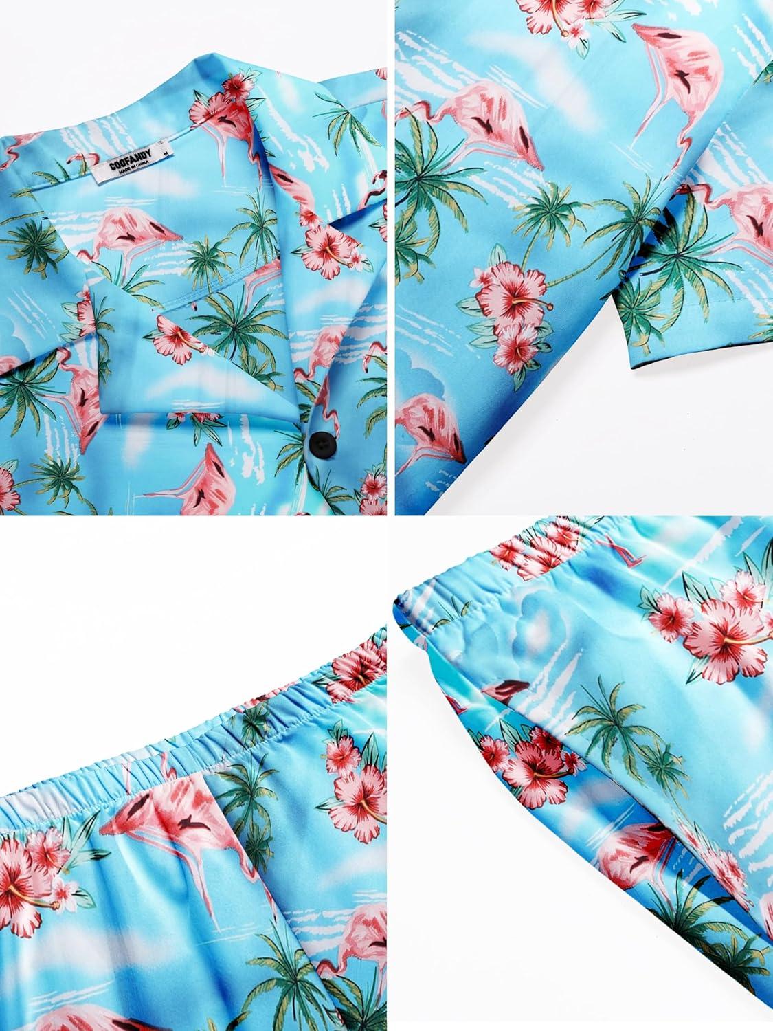 COOFANDY Men’s Hawaiian Matching Shirt and Shorts Set Summer Beach 2 Piece Outfits Short Sleeve Cuban Shirts and Shorts(Flamingo)