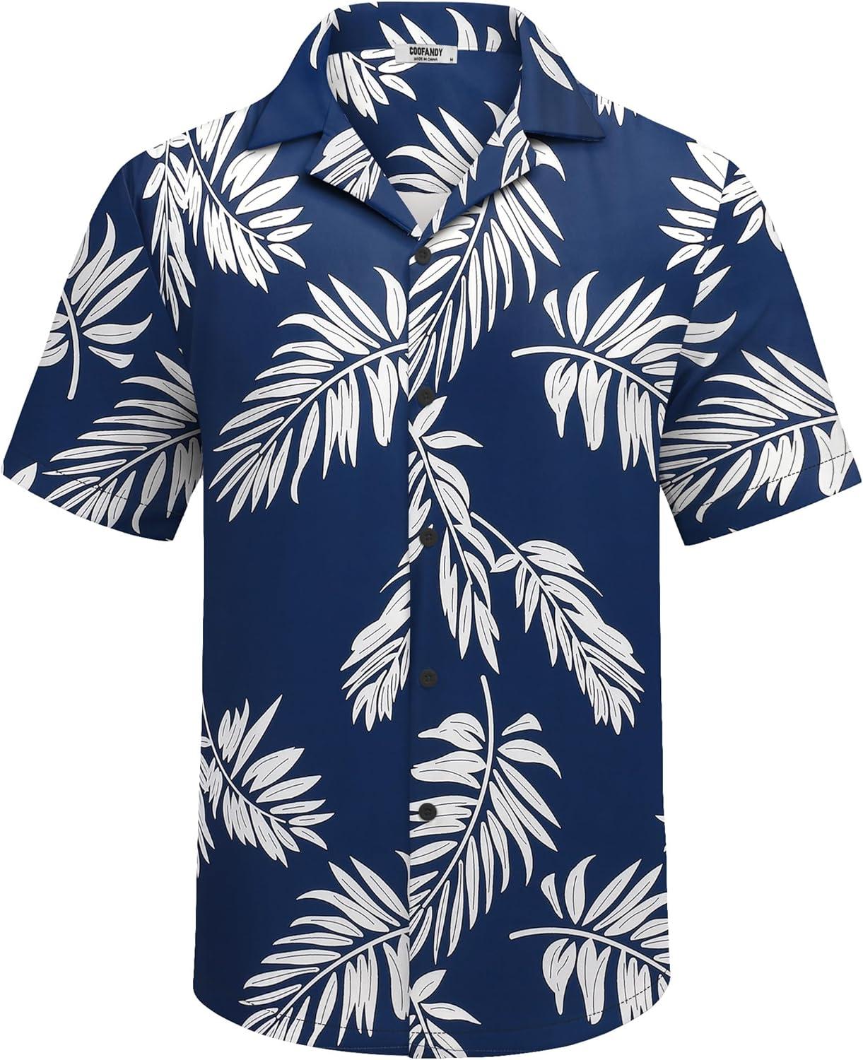 COOFANDY Men’s Hawaiian 2 Piece Outfits Summer Beach Matching Set Short Sleeve Floral Shirts and Shorts(White Floral Navy)