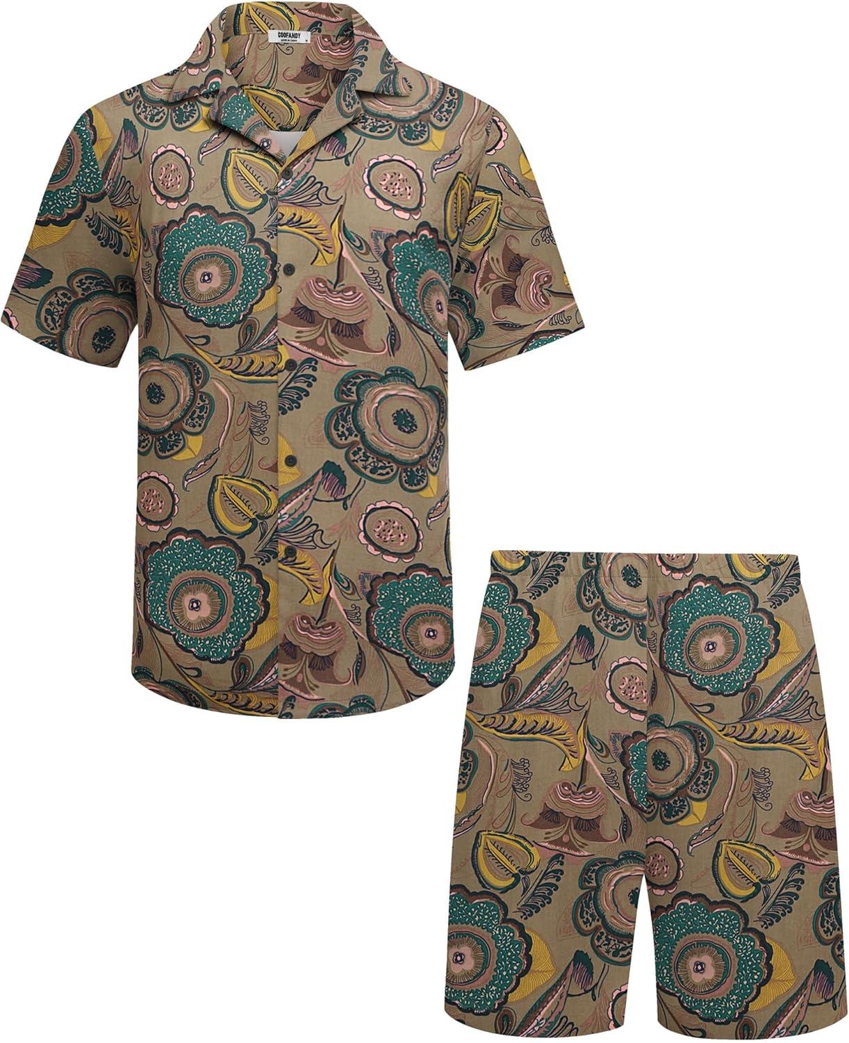 COOFANDY Men’s Hawaiian Matching Shirt and Shorts Set Summer Beach 2 Piece Outfits Short Sleeve Cuban Shirts and Shorts(Dream Garden)