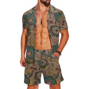 COOFANDY Men’s Hawaiian Matching Shirt and Shorts Set Summer Beach 2 Piece Outfits Short Sleeve Cuban Shirts and Shorts(Retro Brown)
