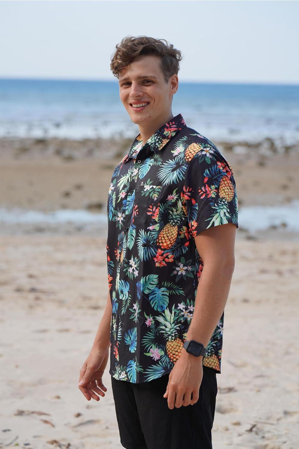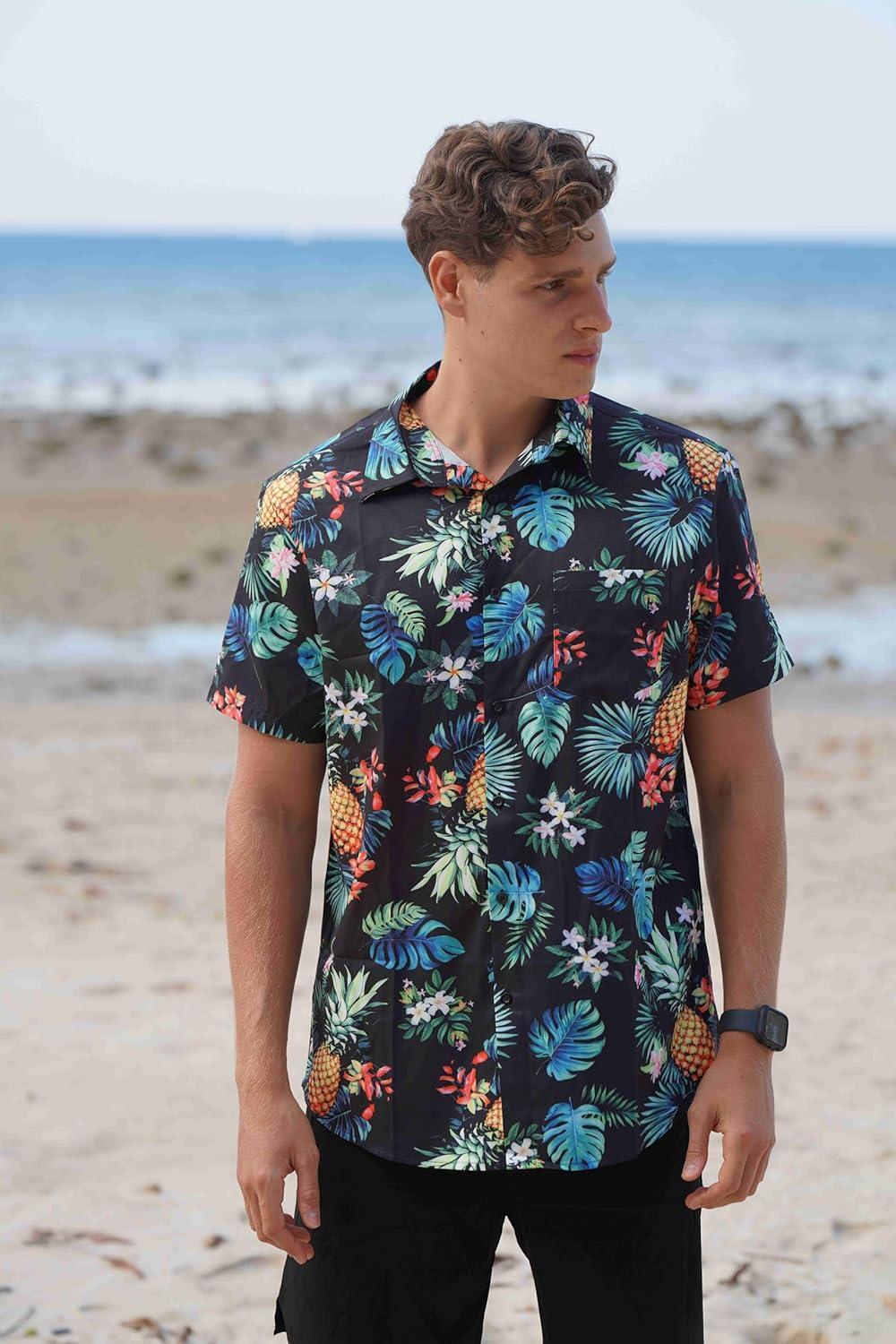 COOFANDY Men’s Hawaiian 2 Piece Outfits Summer Beach Matching Set Short Sleeve Floral Shirts and Shorts(Pineapple Leaf Black)