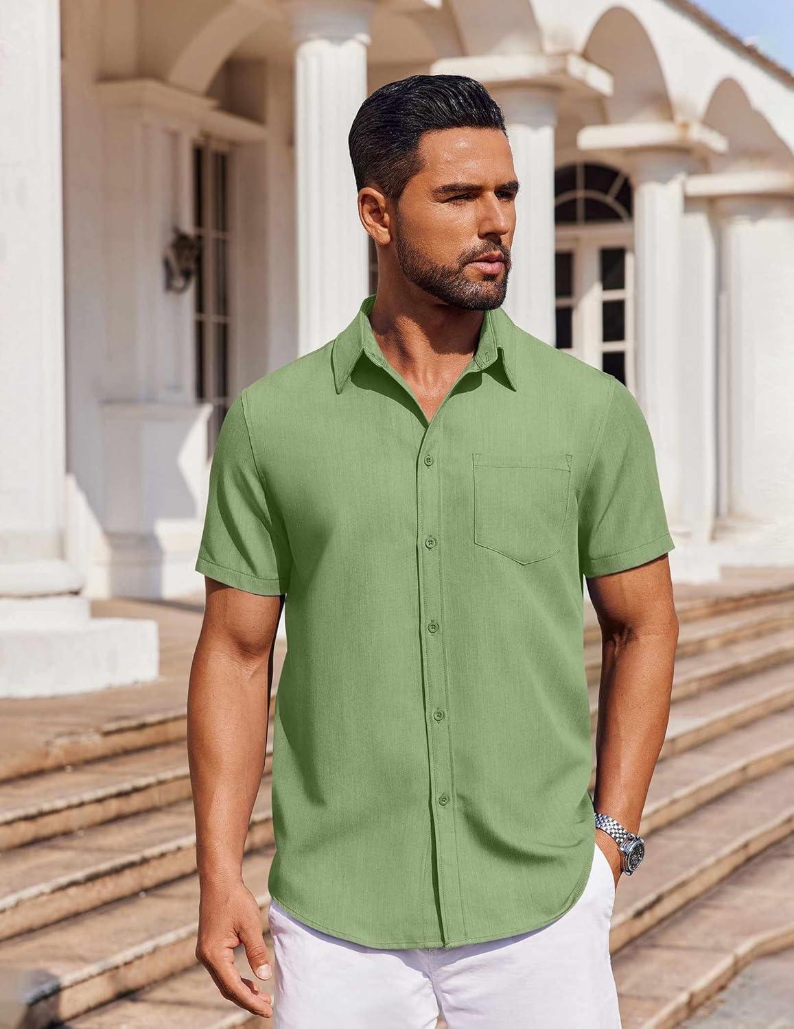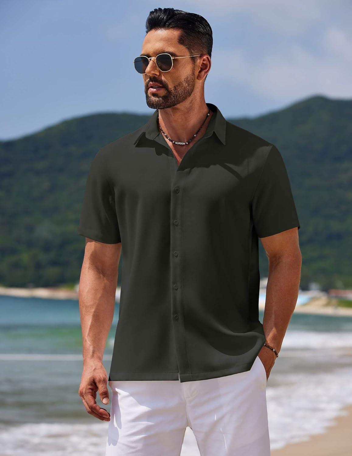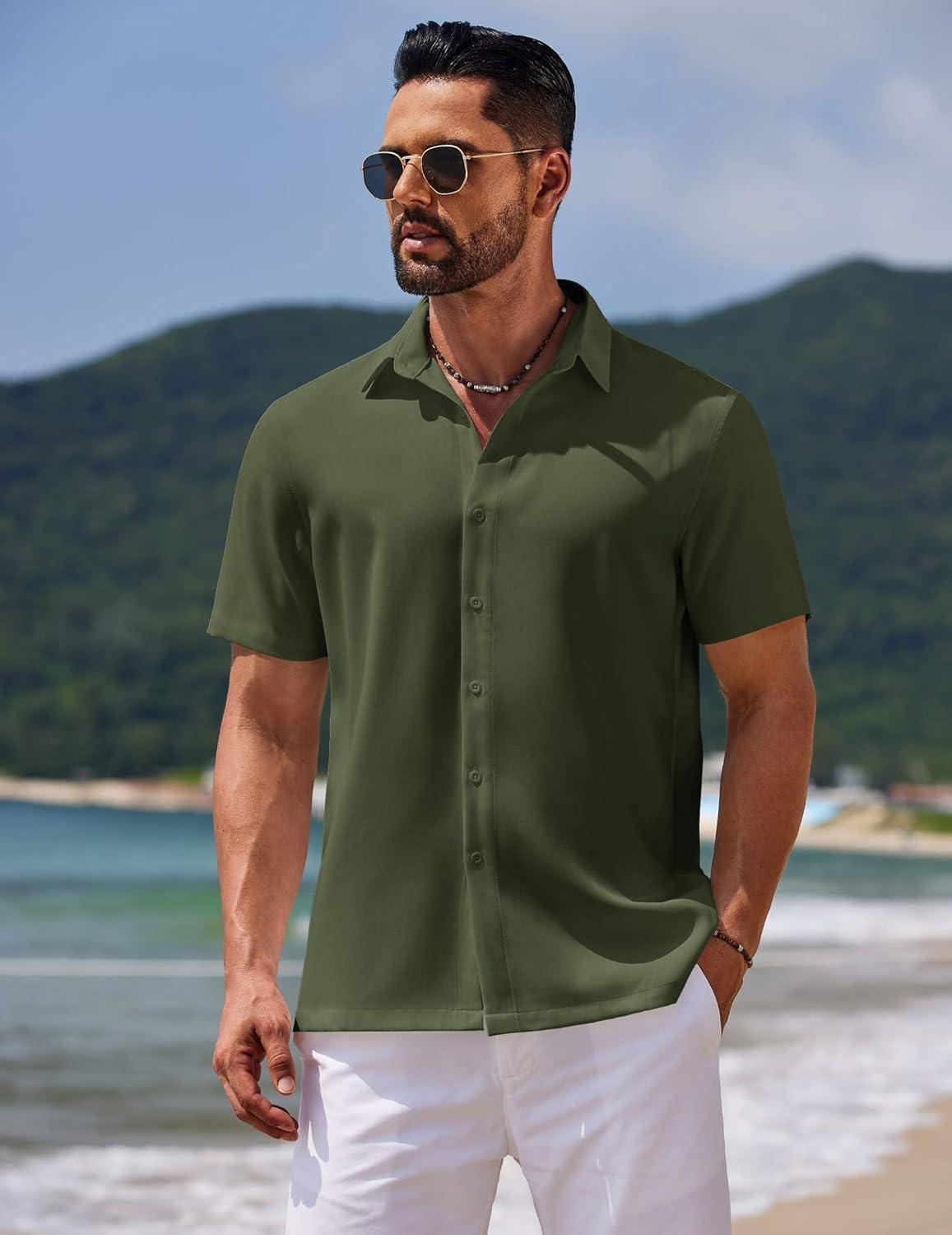 COOFANDY Men’s Casual Short Sleeve Button Down Shirts Untucked Dress Shirts Wrinkle Free Summer Wedding Shirts Solid(Army Green)