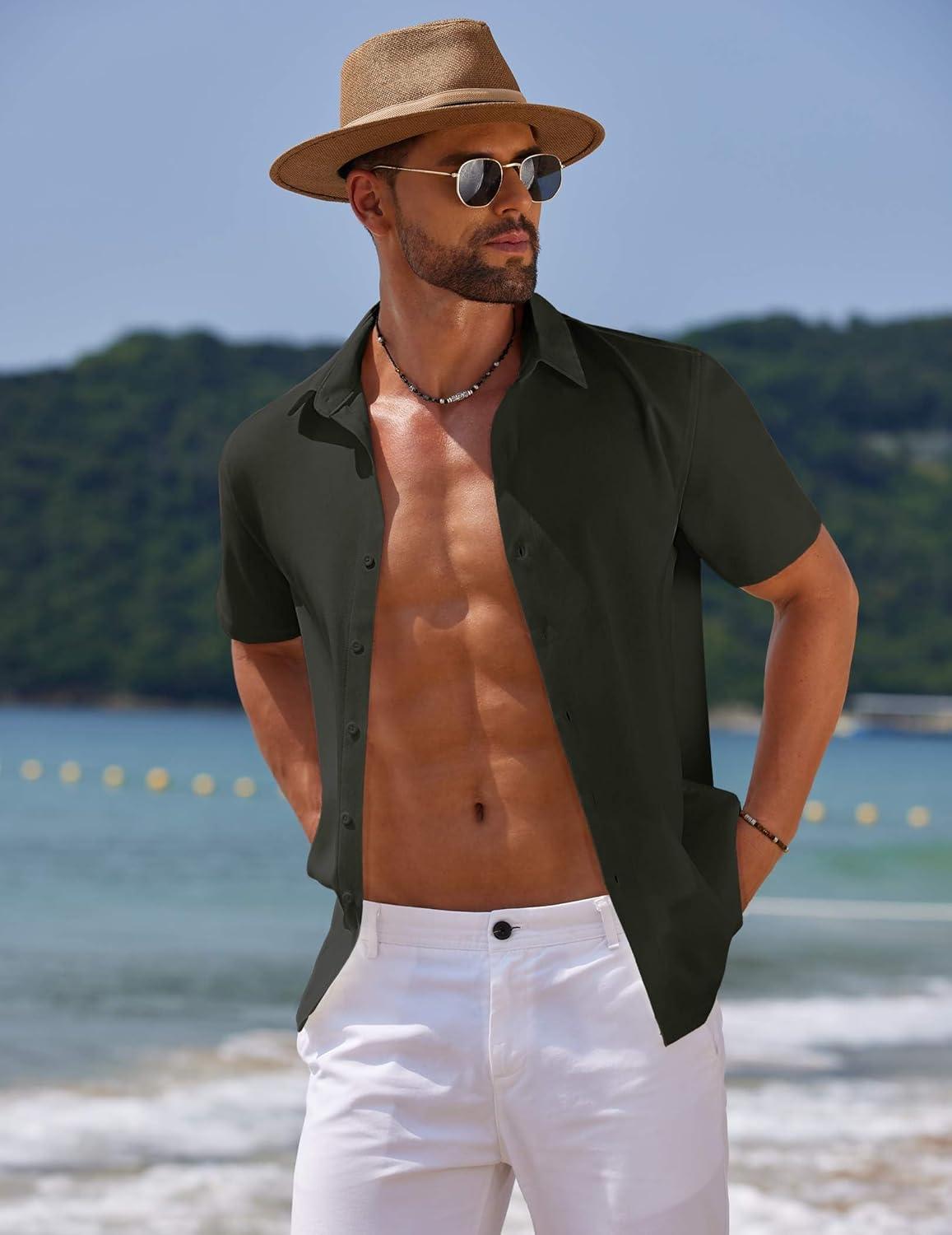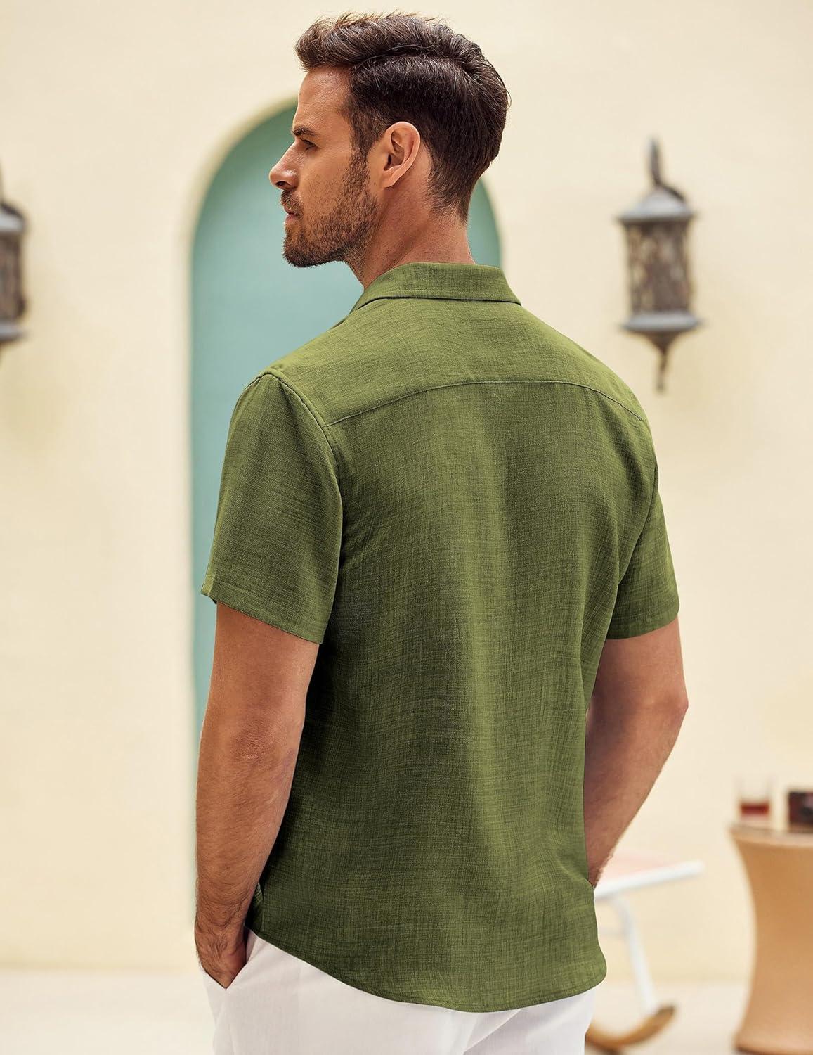 COOFANDY Mens Button Down Short Sleeve Shirt Casual Shirts Summer Beach Textured Shirts with Pocket(Olive Green)