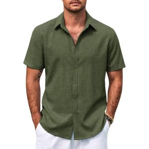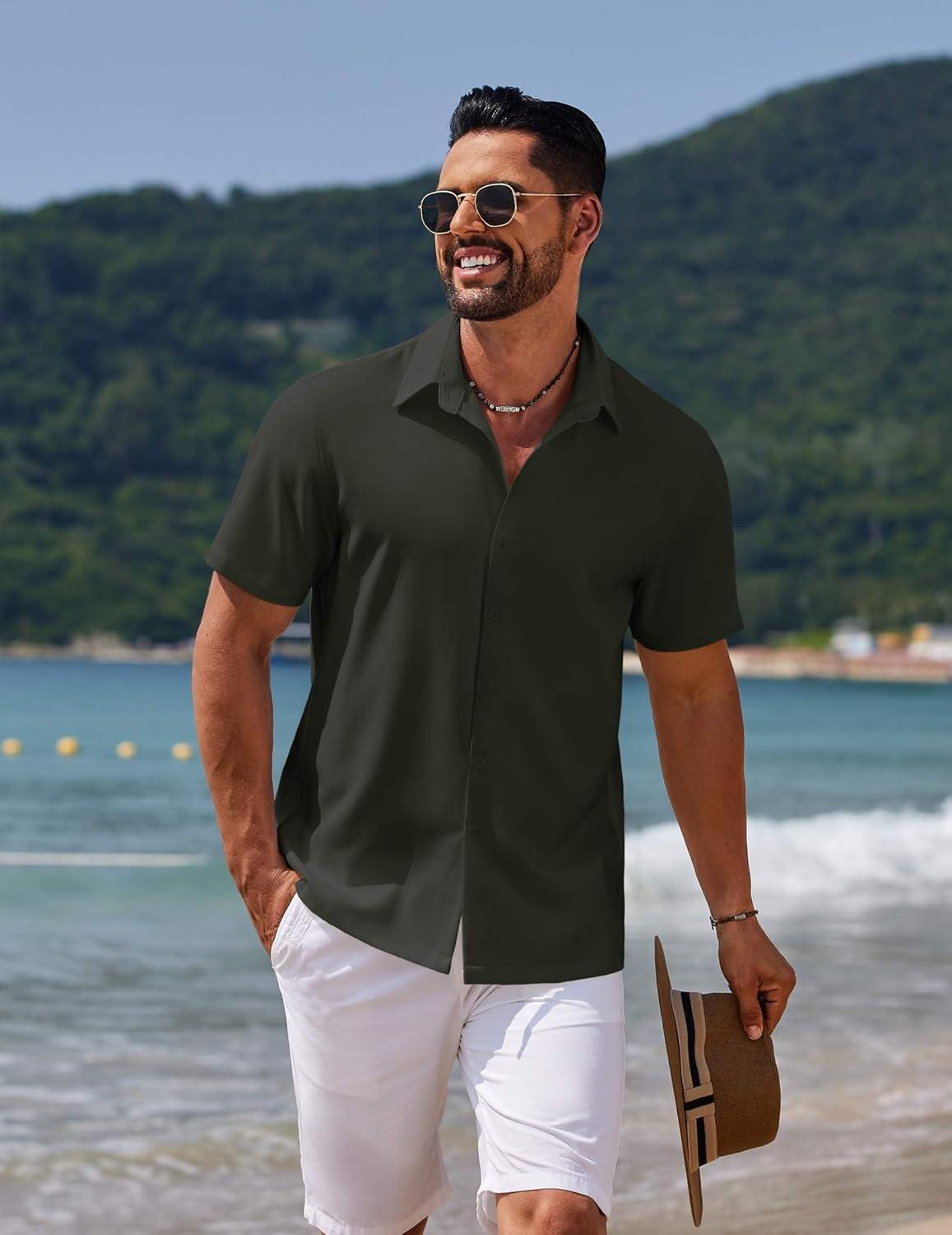 COOFANDY Men’s Knit Shirts Vintage Short Sleeve Button Down Shirt Casual Summer Beach Shirt(Army Green)