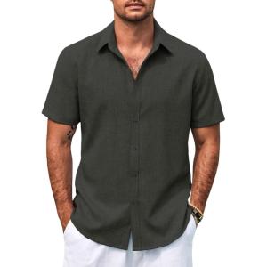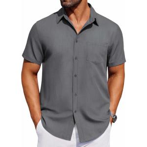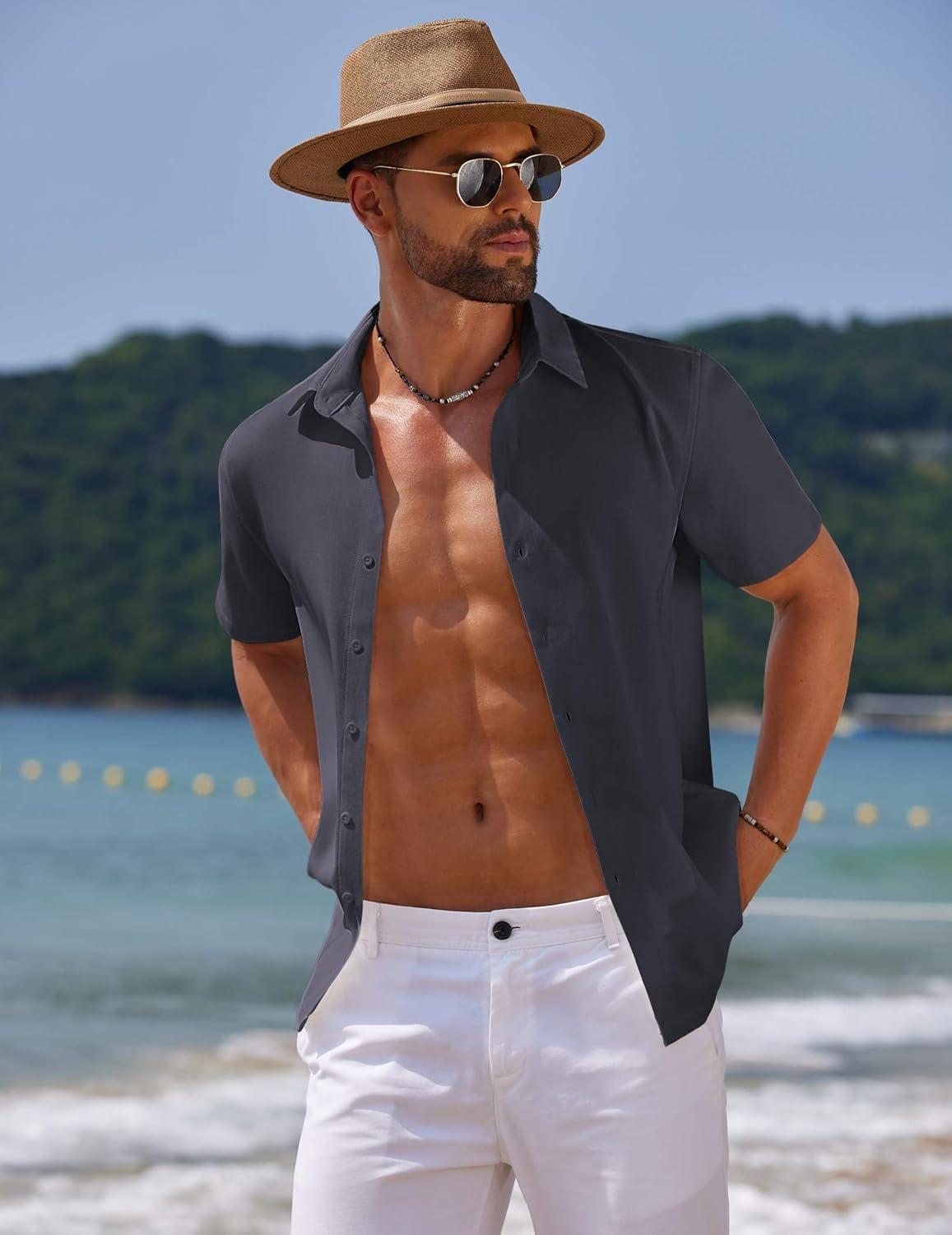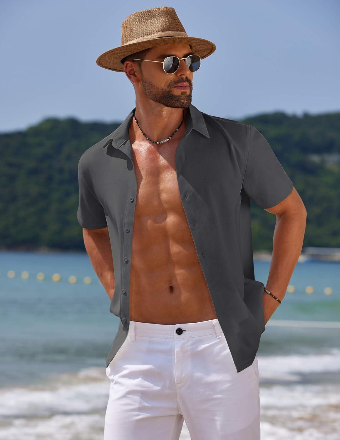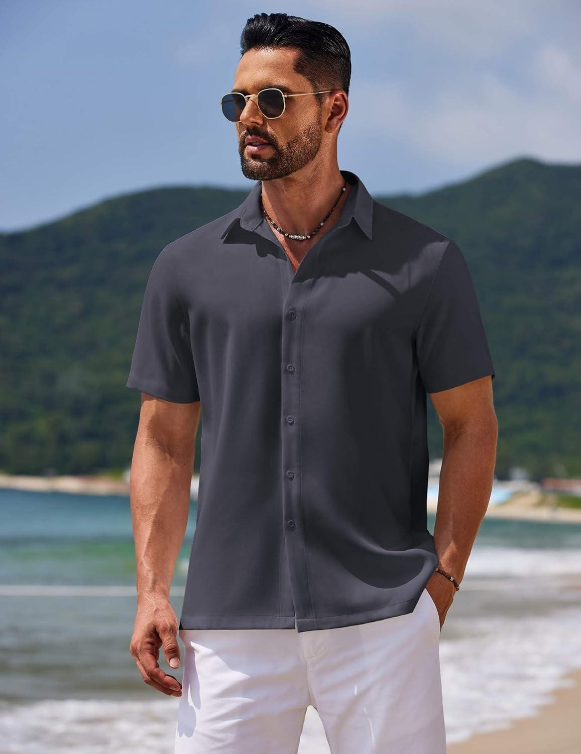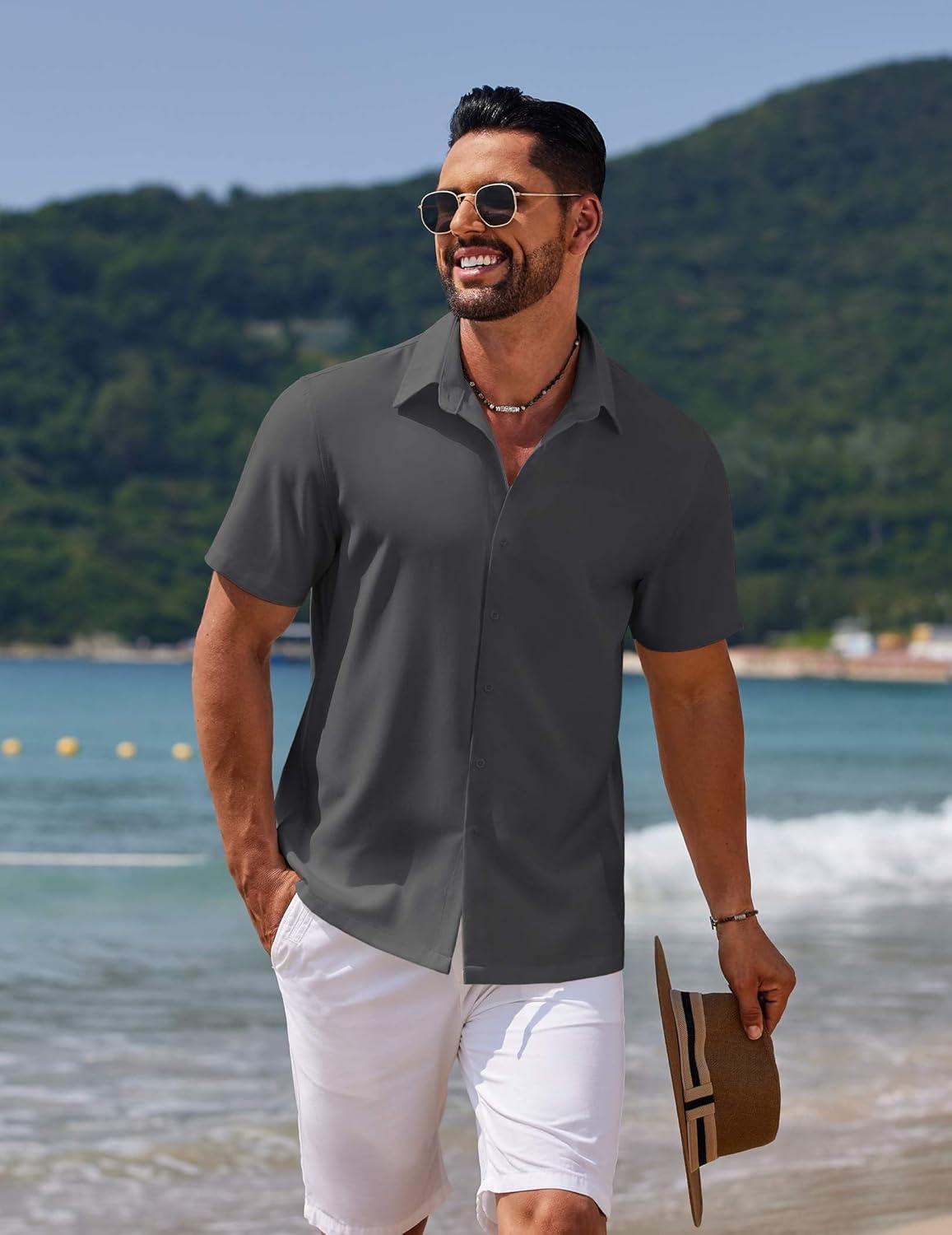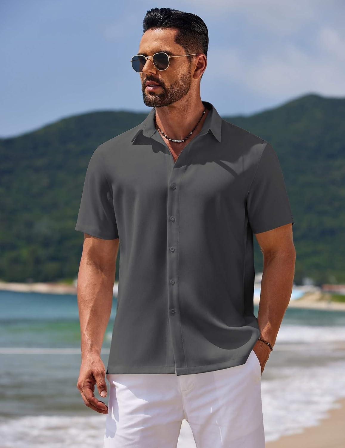 COOFANDY Men’s Casual Short Sleeve Button Down Shirts Untucked Dress Shirts Wrinkle Free Summer Wedding Shirts Solid(Dark Grey)