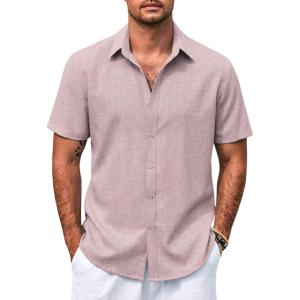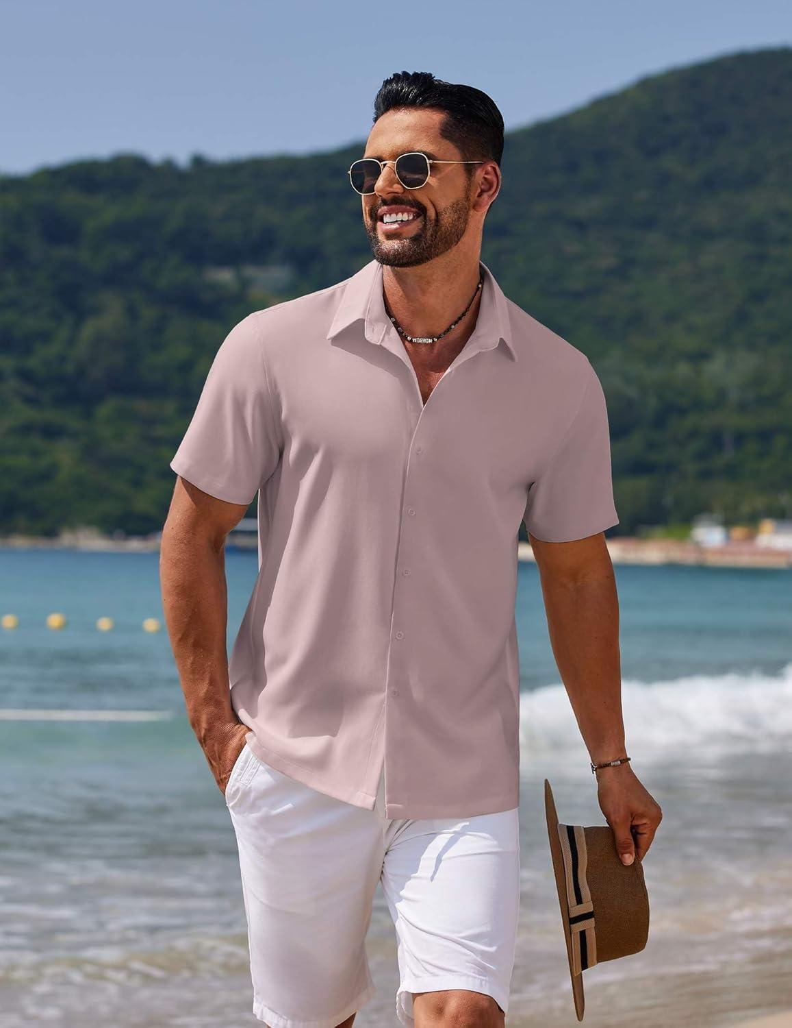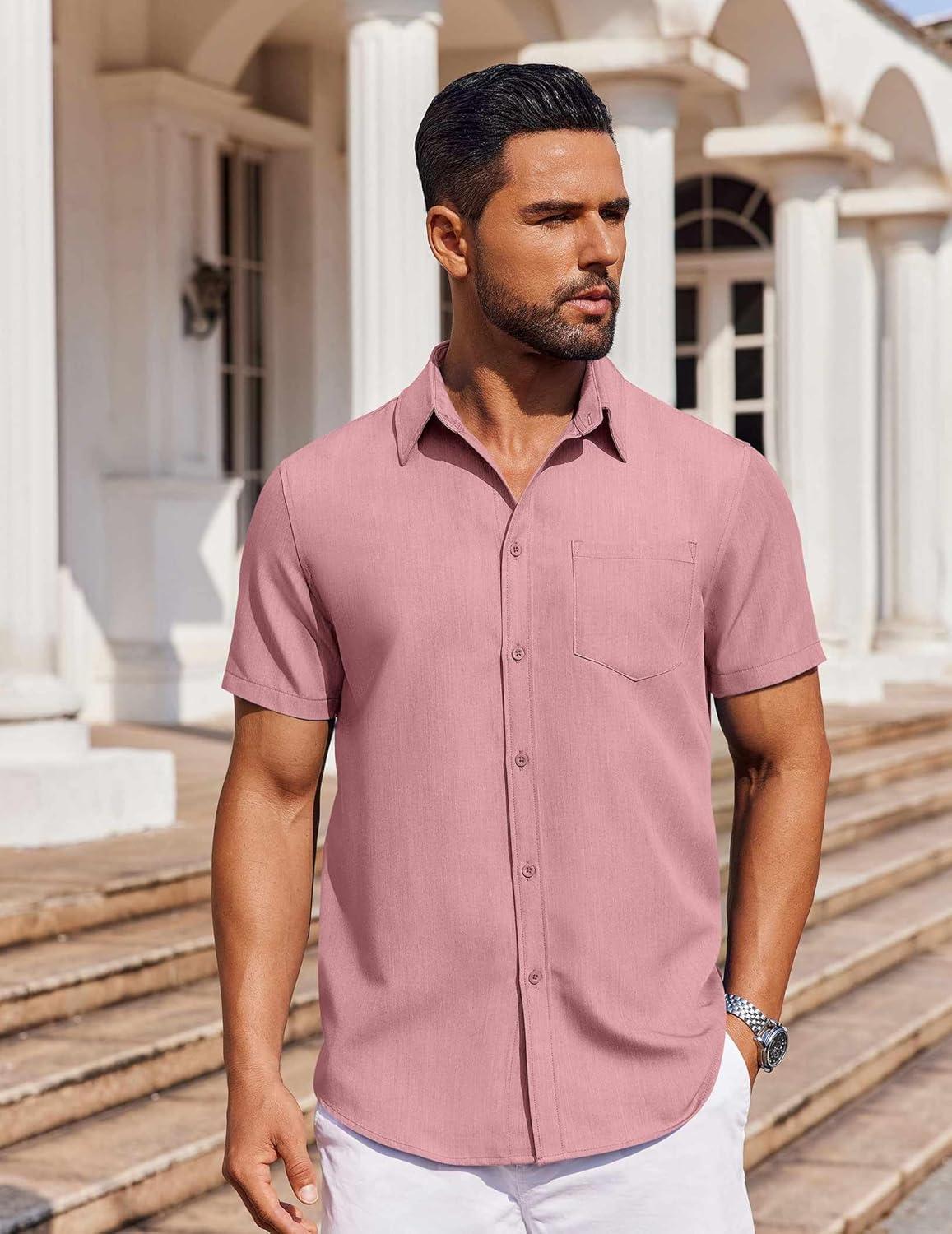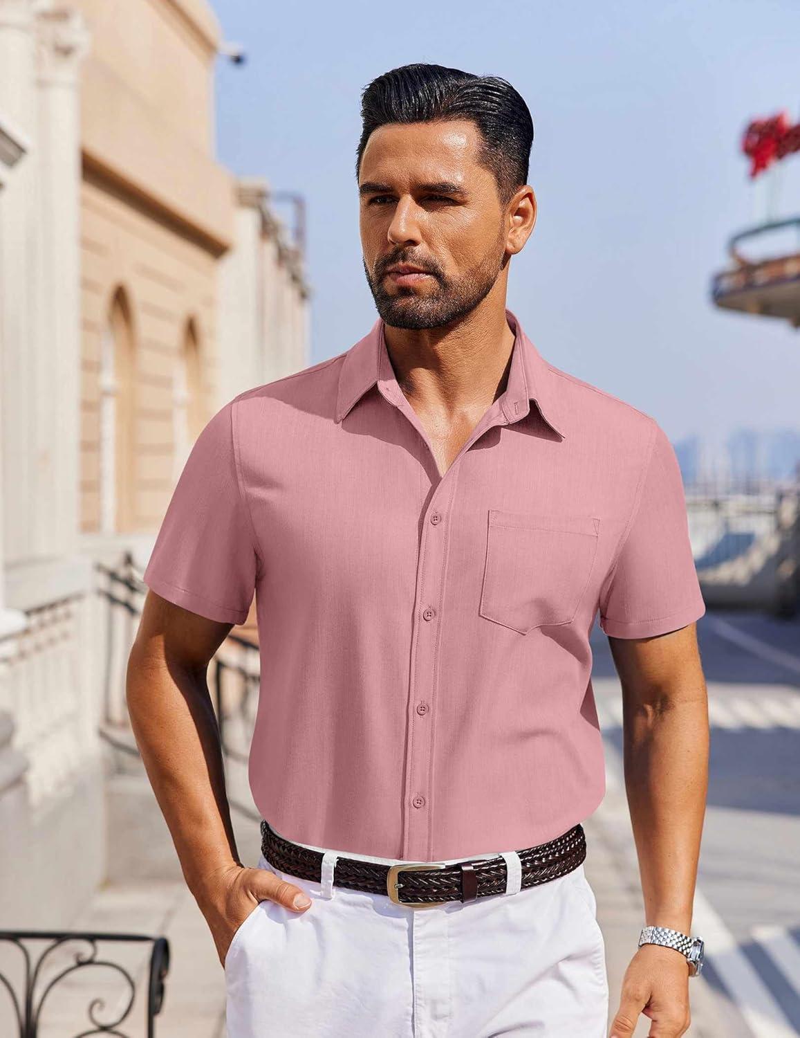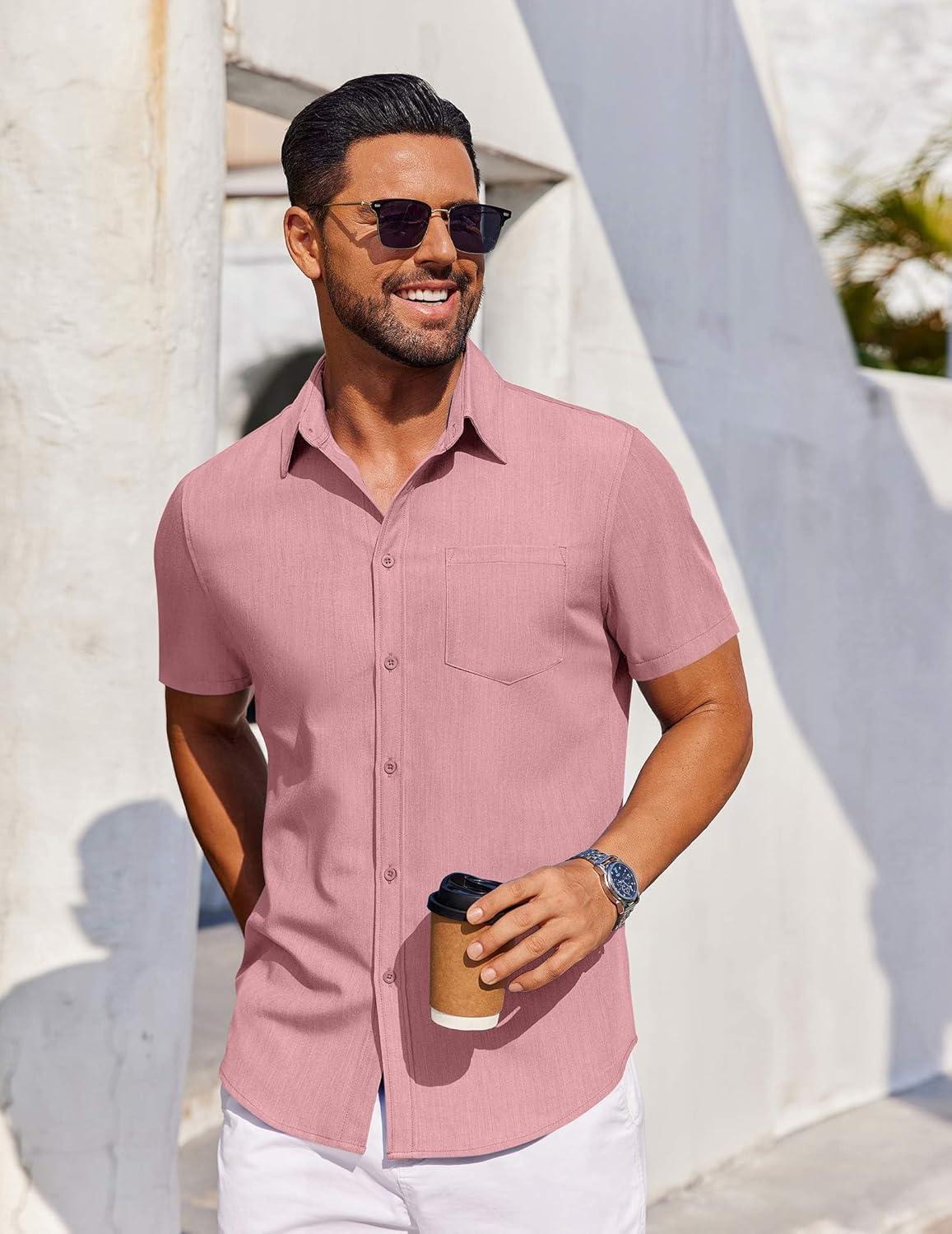 COOFANDY Men’s Casual Short Sleeve Button Down Shirts Untucked Dress Shirts Wrinkle Free Summer Wedding Shirts Solid(Pink)