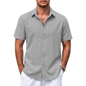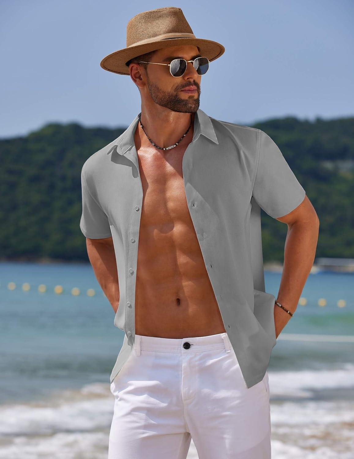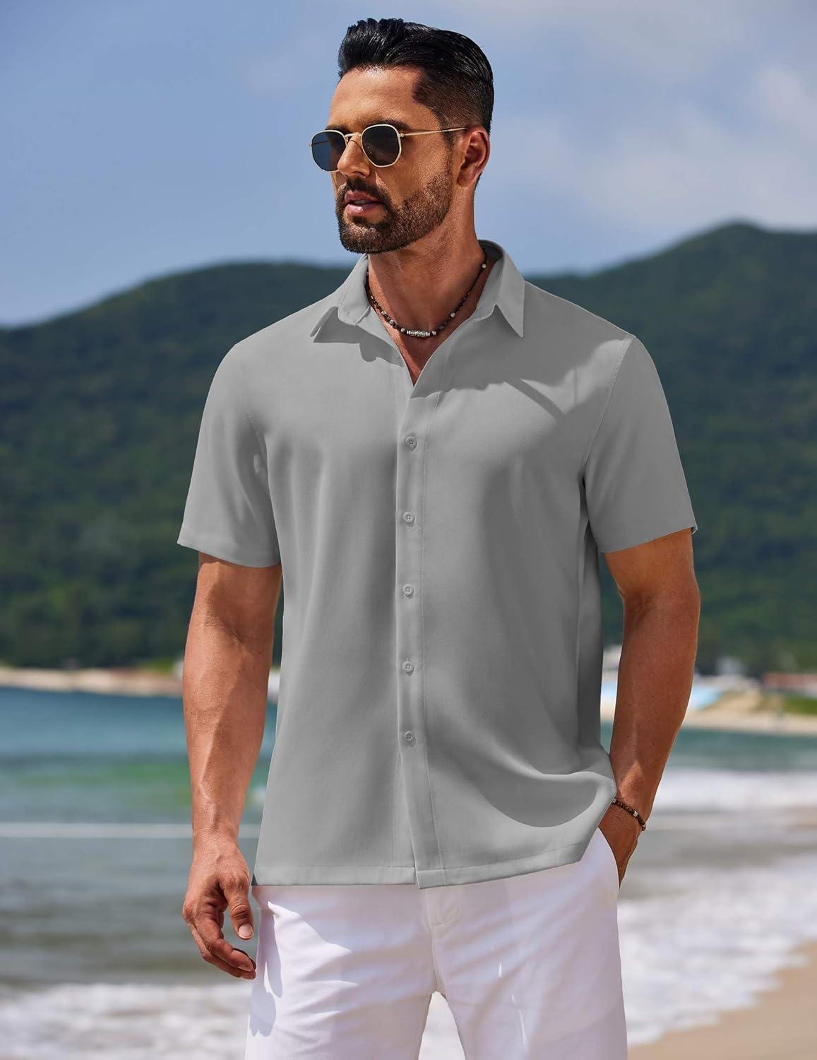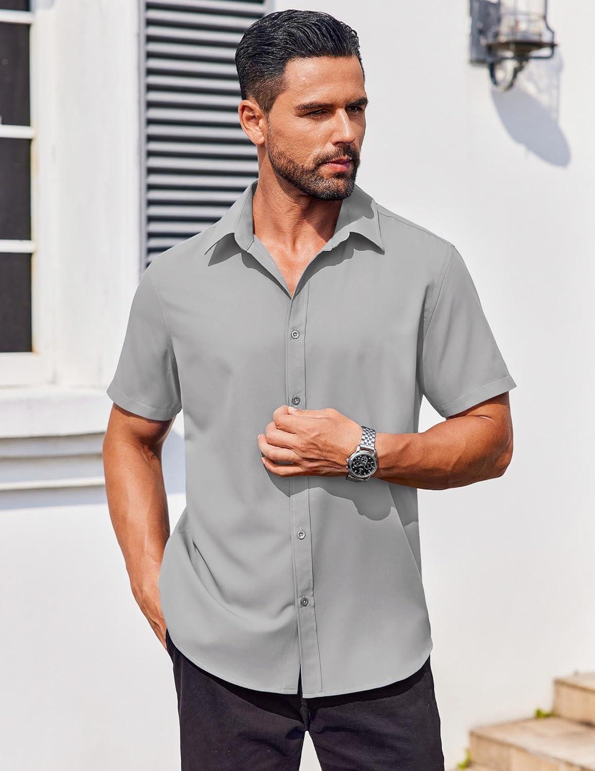COOFANDY Men’s Casual Short Sleeve Button Down Shirts Untucked Dress Shirts Wrinkle Free Summer Wedding Shirts Solid(Light Grey)