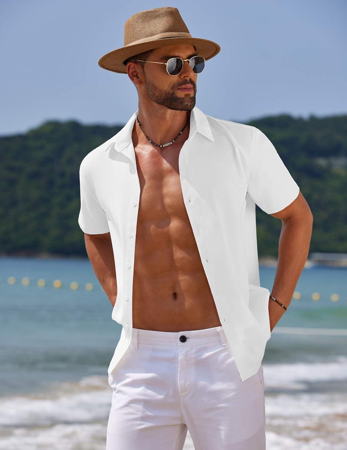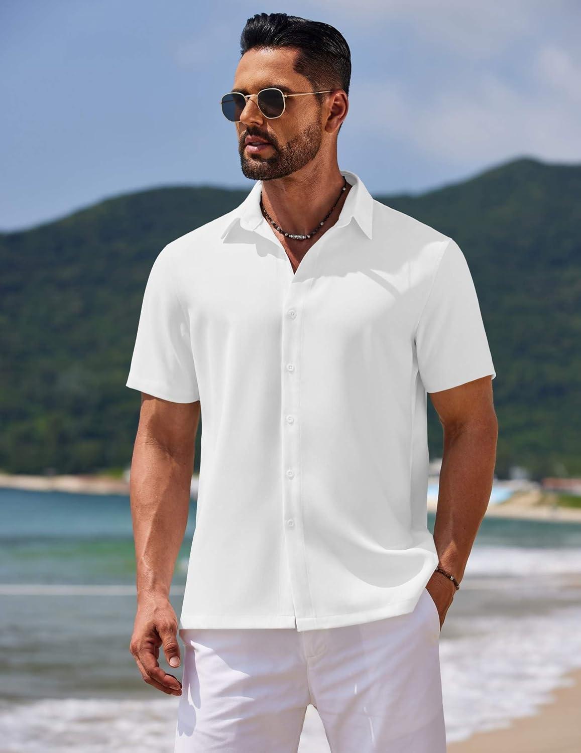 COOFANDY Men’s Casual Short Sleeve Button Down Shirts Untucked Dress Shirts Wrinkle Free Summer Wedding Shirts Solid(A-white)