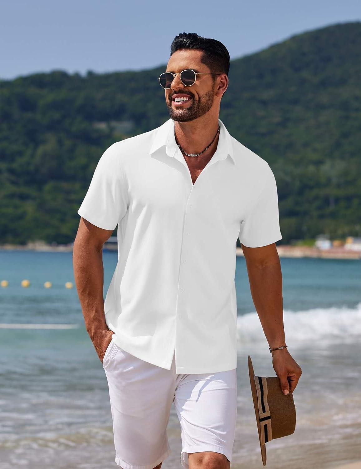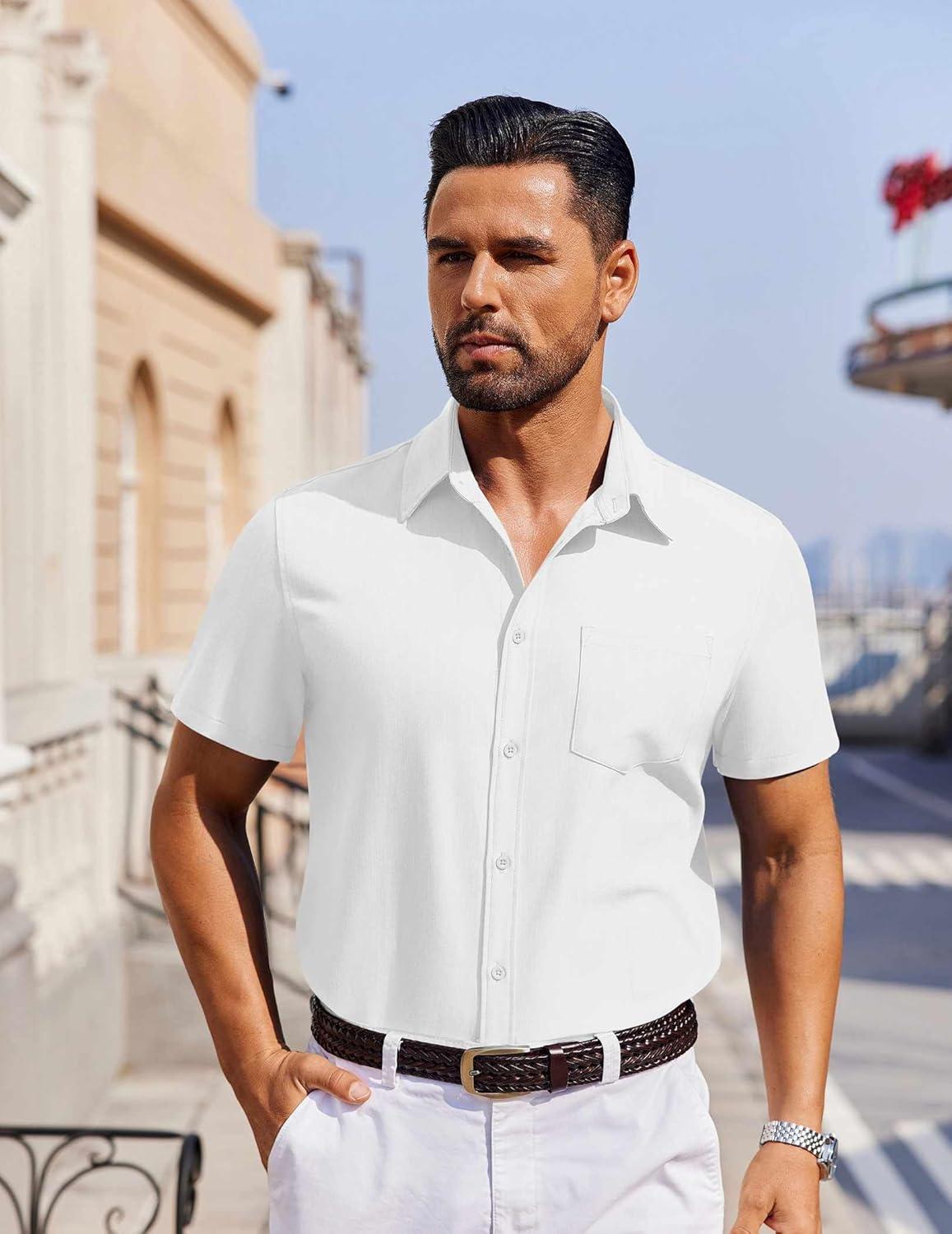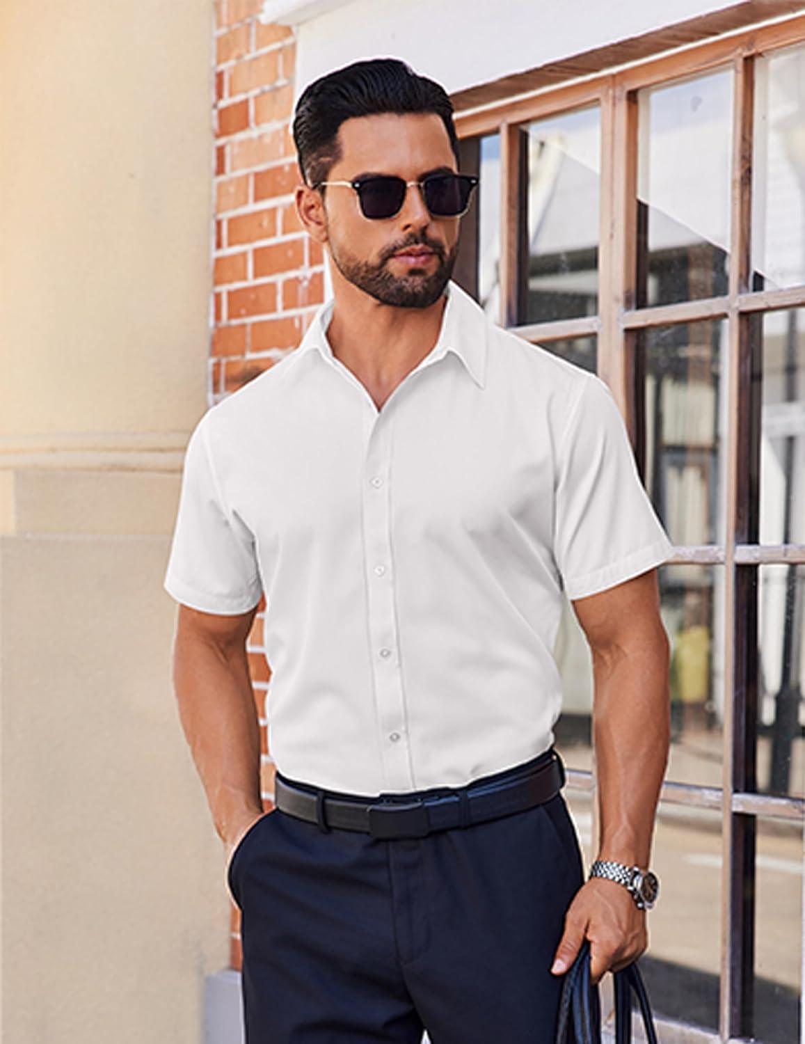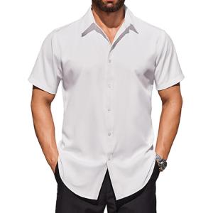 COOFANDY Mens Short Sleeve Dress Shirts Stretch Wrinkle Free Button Down Shirt Casual Summer Top(White)