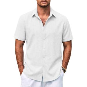 COOFANDY Mens Button Down Short Sleeve Shirt Casual Shirts Summer Beach Textured Shirts with Pocket(White)