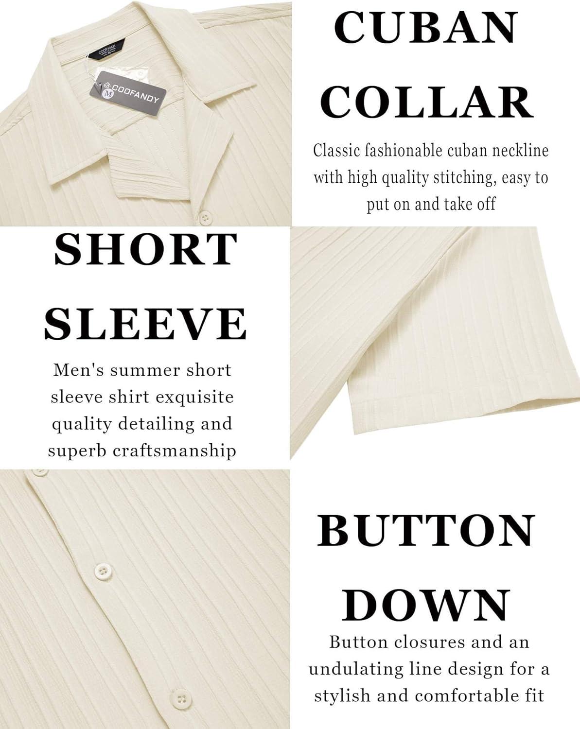 COOFANDY Men’s Casual Shirts Short Sleeve Button Down Shirts Fashion Textured Summer Beach Shirt(Beige)