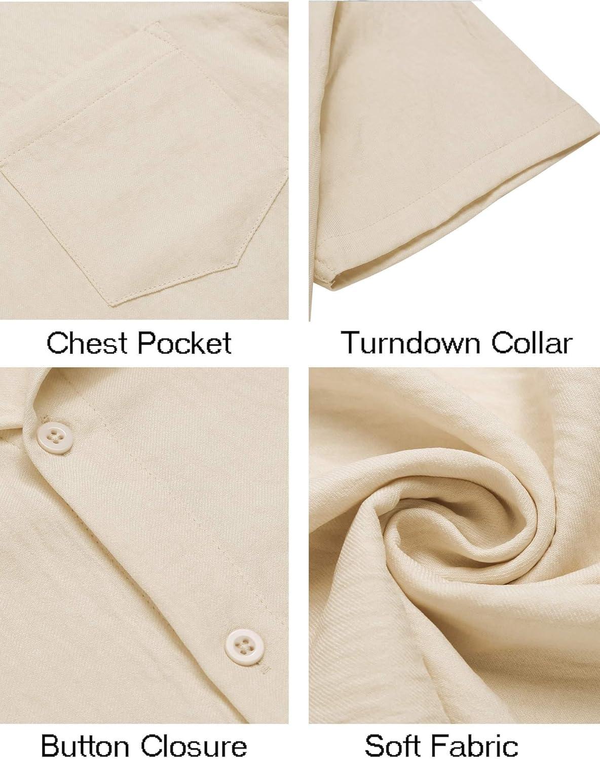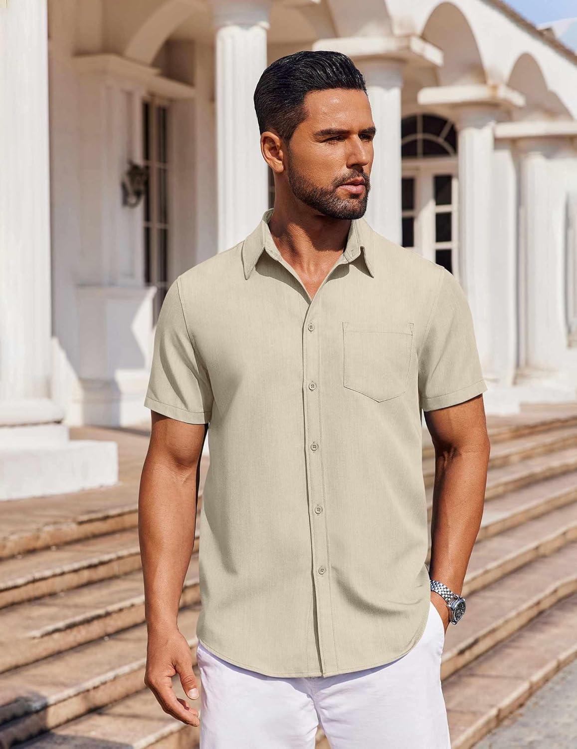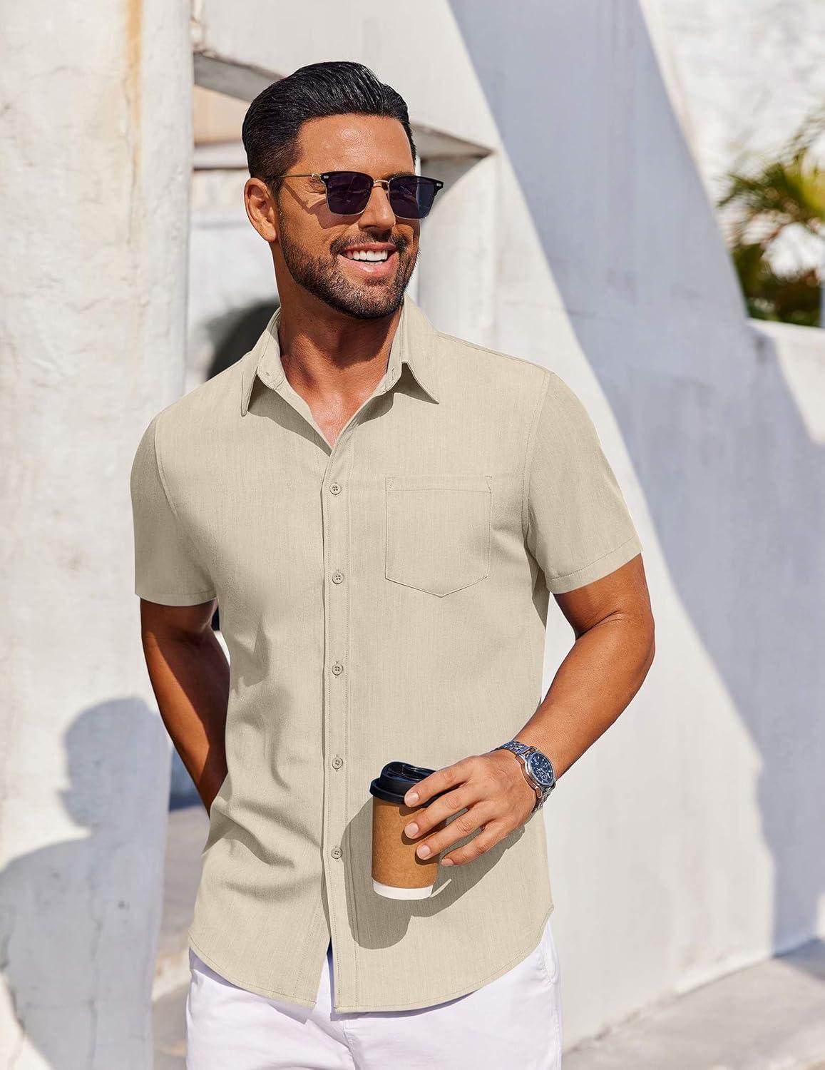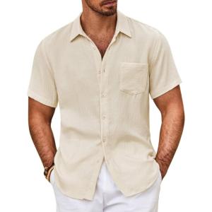 COOFANDY Mens Button Down Short Sleeve Shirt Casual Shirts Summer Beach Textured Shirts with Pocket(Beige)