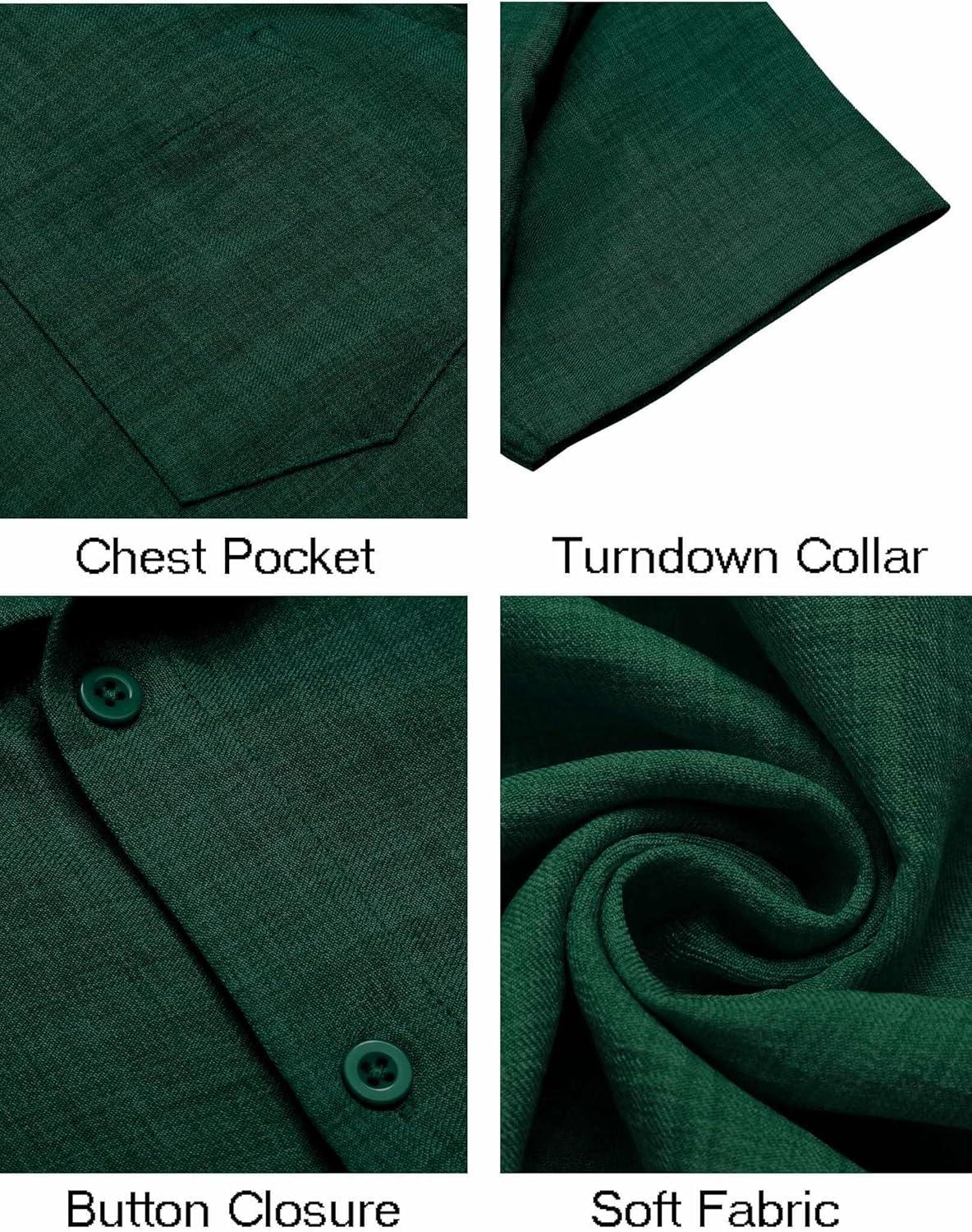 COOFANDY Men’s Button Down Shirts Stain Shield Dress Shirts Short Sleeve Summer Business Casual Shirts(Dark Green)