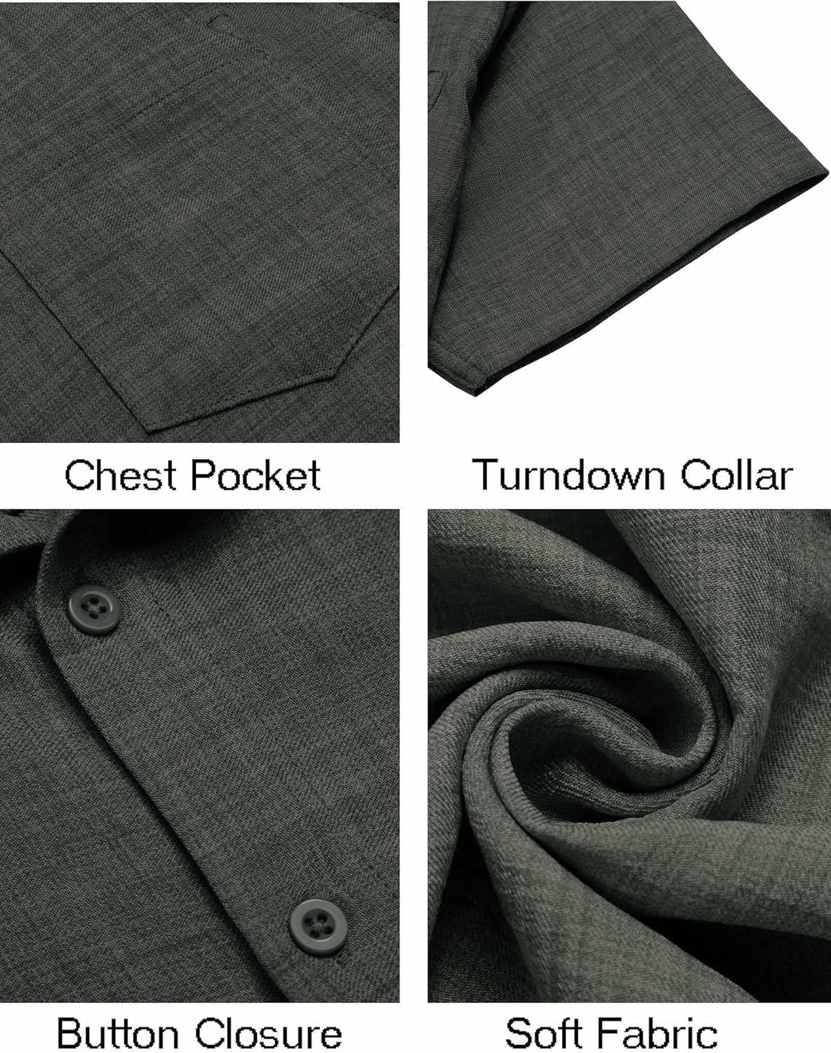 COOFANDY Men’s Button Down Shirts Stain Shield Dress Shirts Short Sleeve Summer Business Casual Shirts(Dark Grey)
