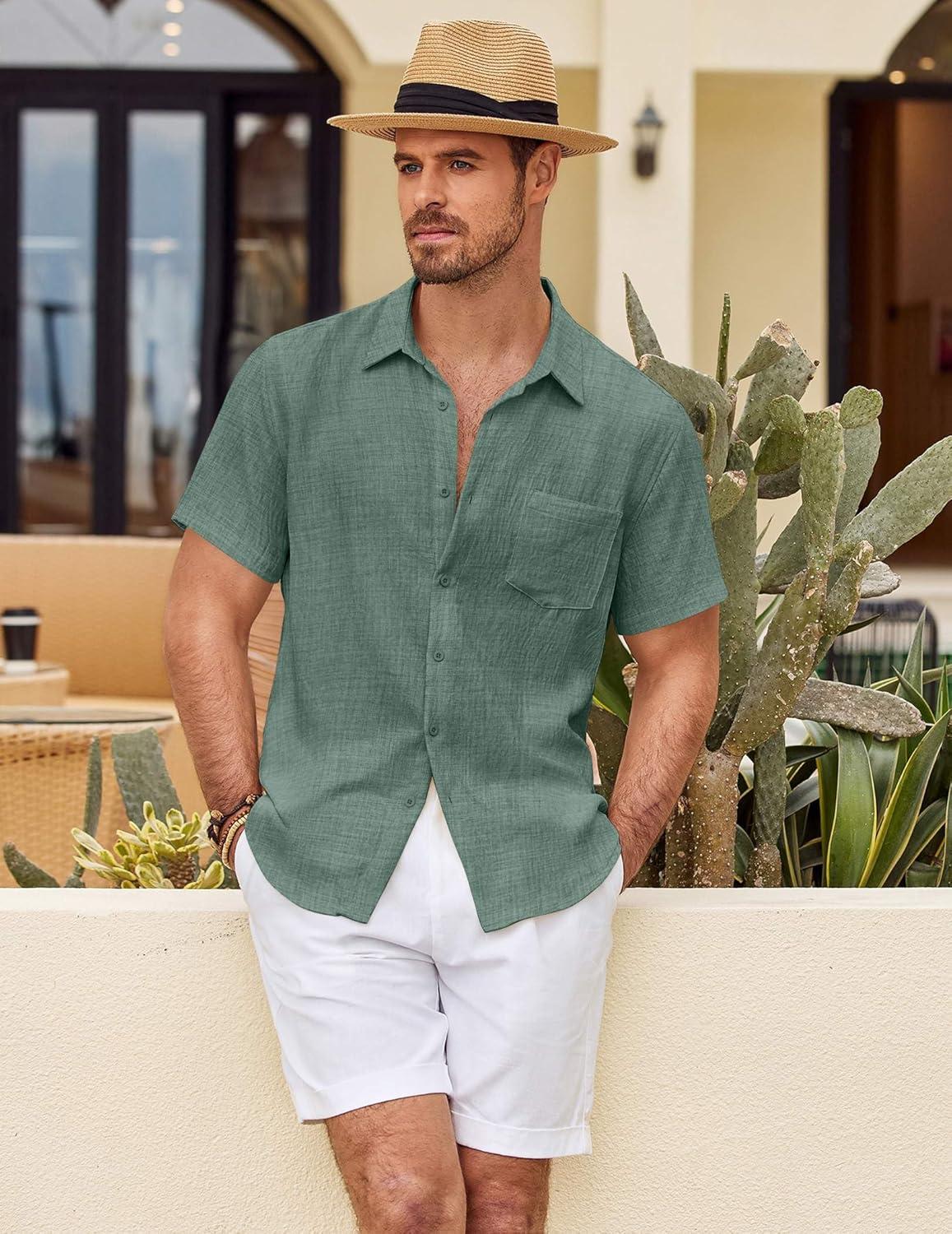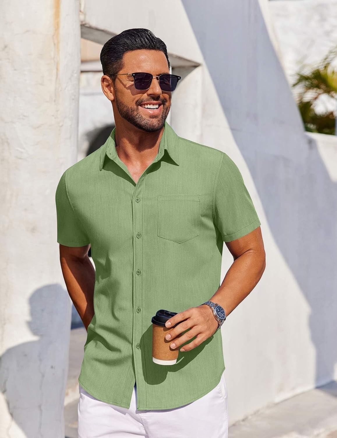 COOFANDY Men’s Knit Shirts Vintage Short Sleeve Button Down Shirt Casual Summer Beach Shirt(Green)