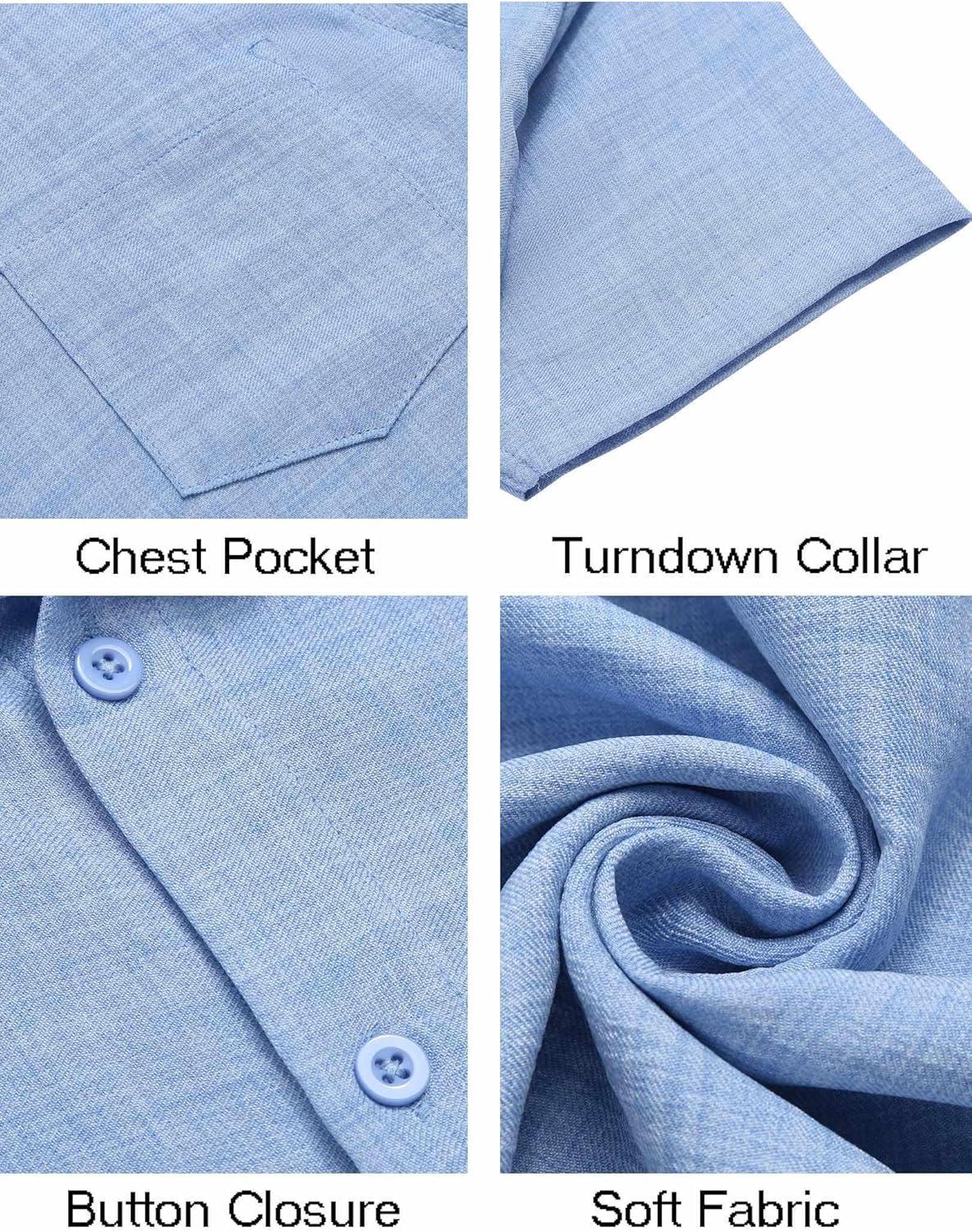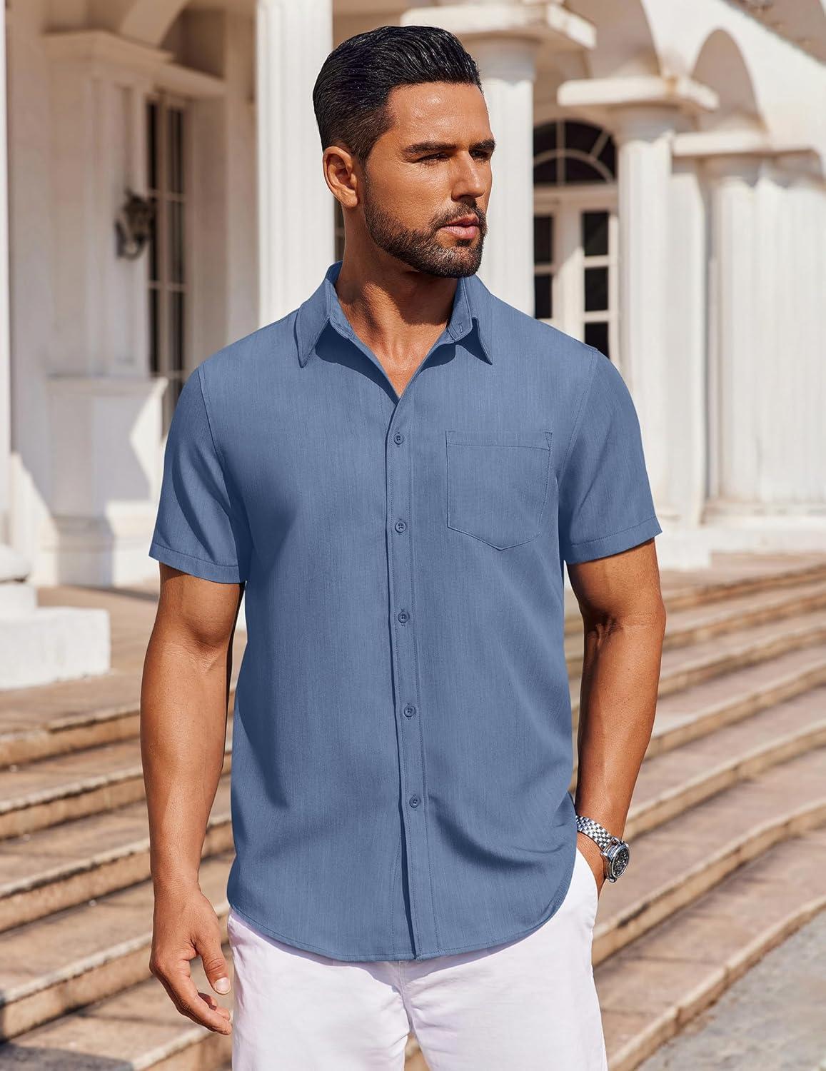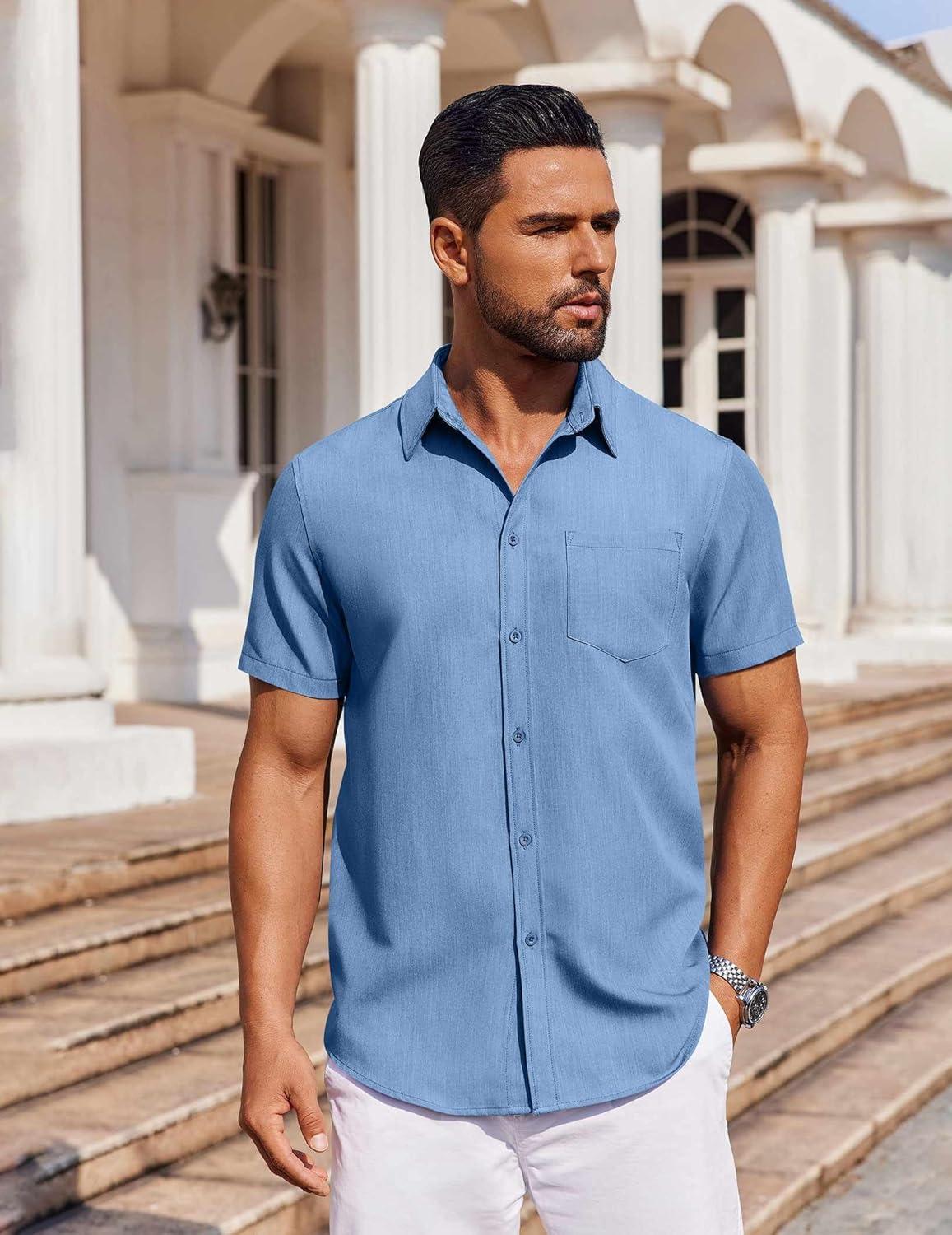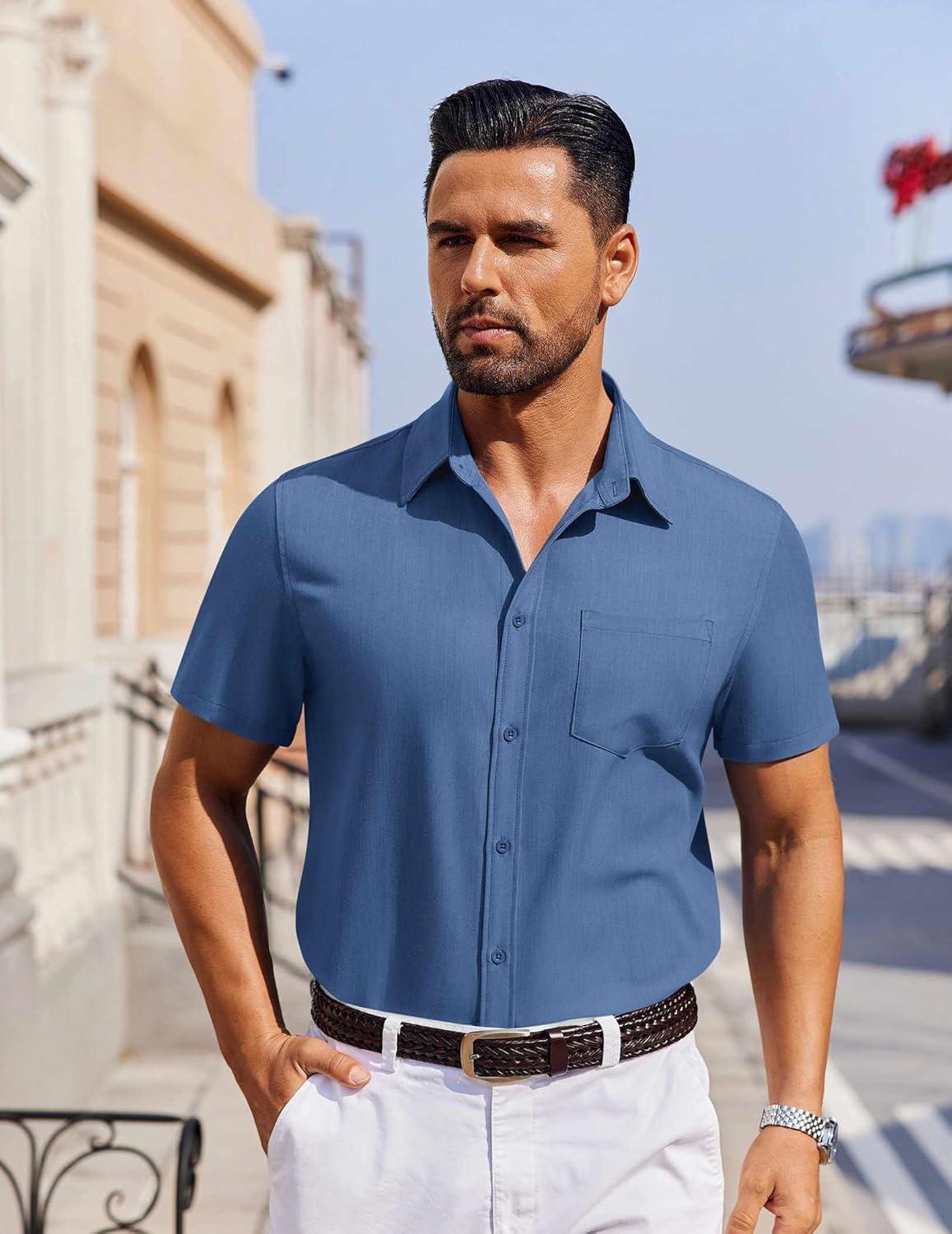 COOFANDY Mens Short Sleeve Button Down Shirts Casual Dress Shirt Untucked Shirts with Pocket(Clear Blue)