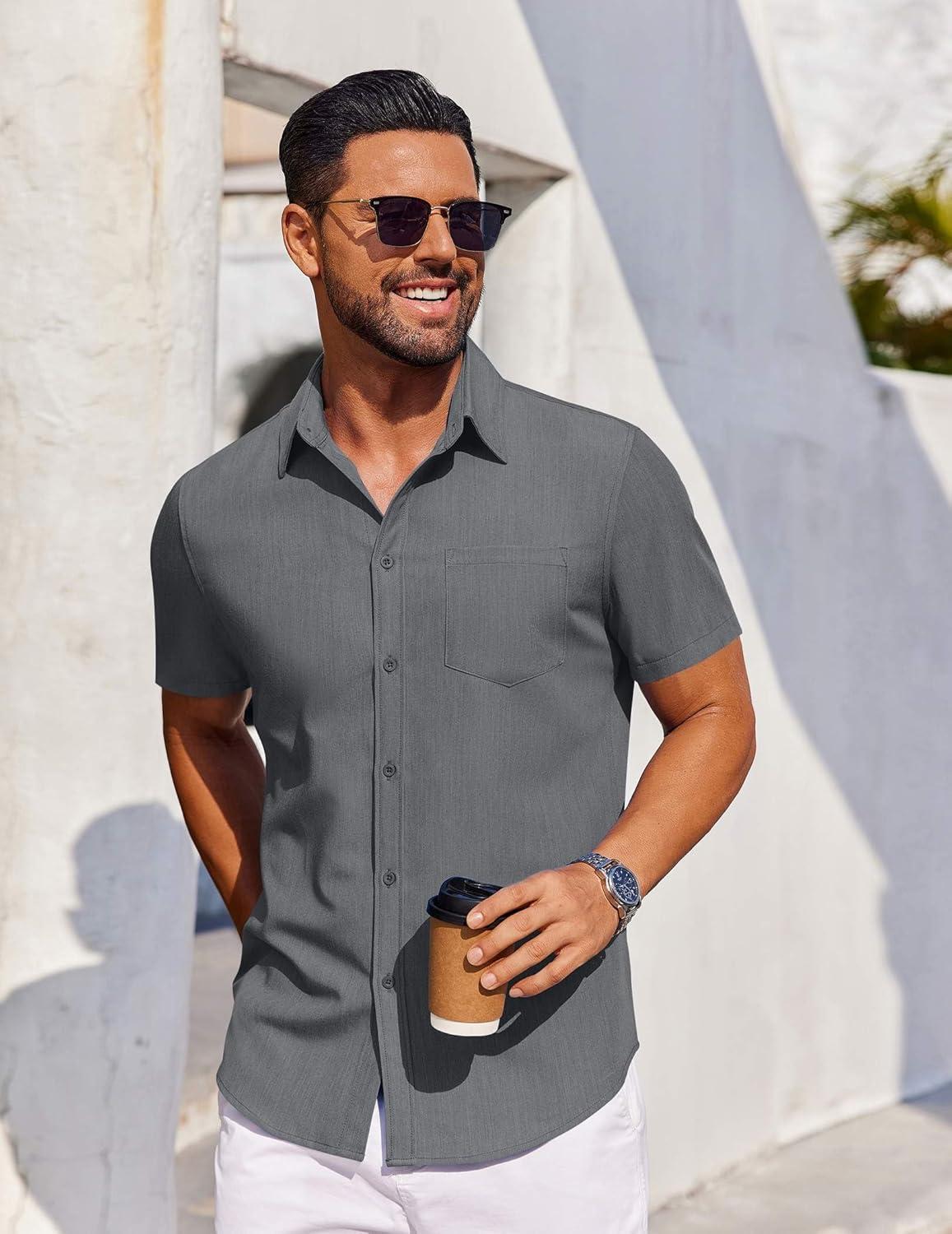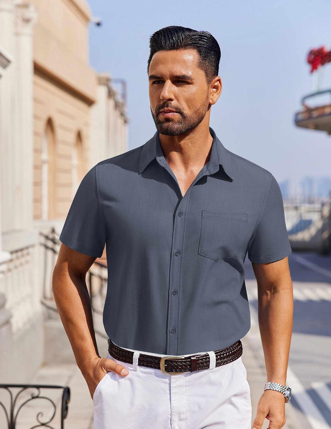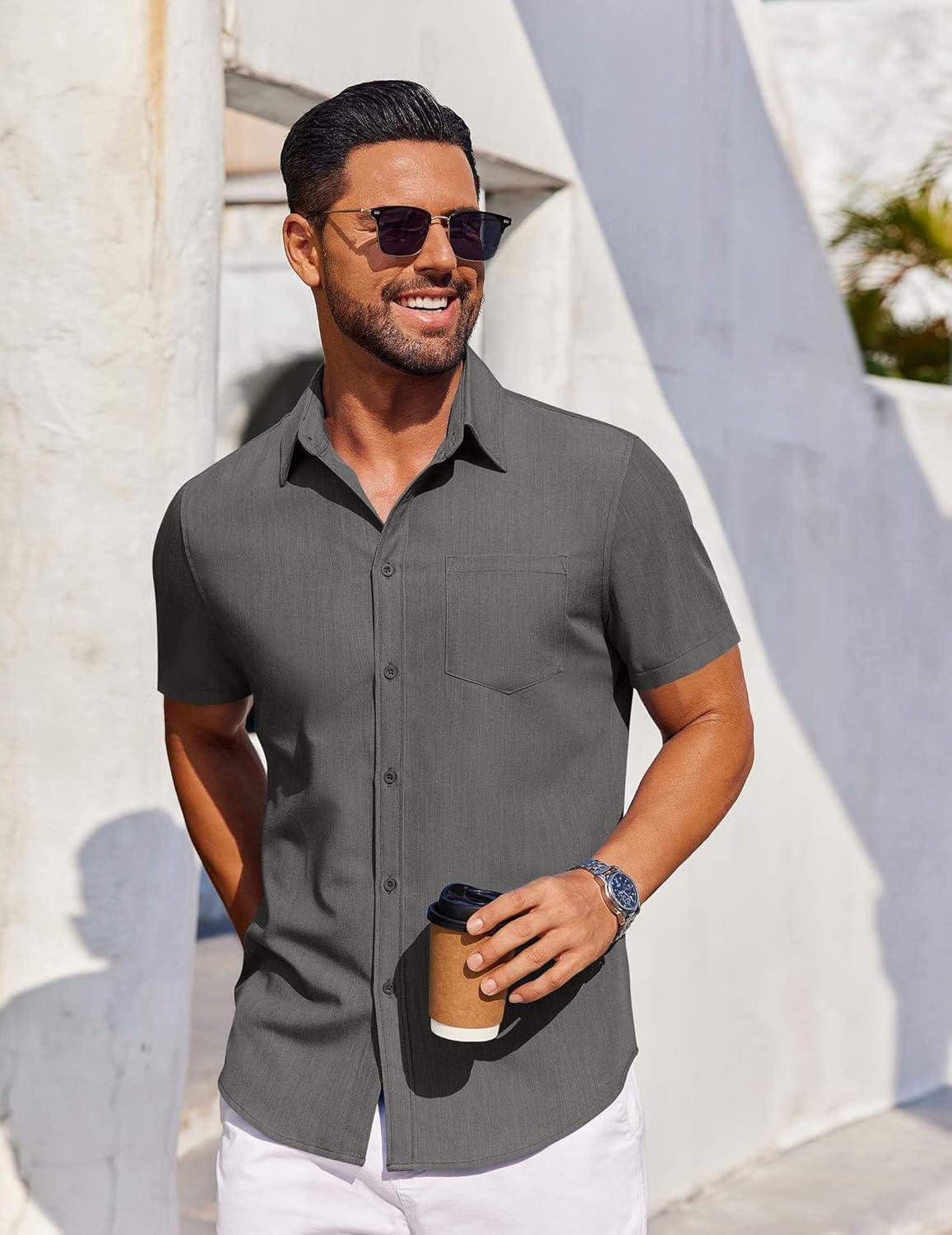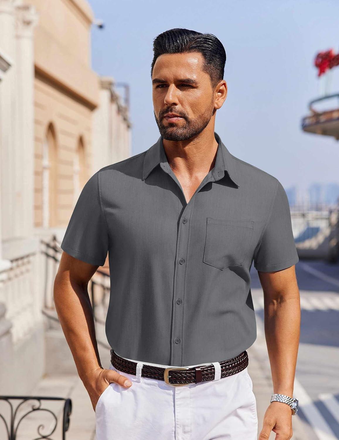 COOFANDY Mens Short Sleeve Button Down Shirts Casual Dress Shirt Untucked Shirts with Pocket(Grey)