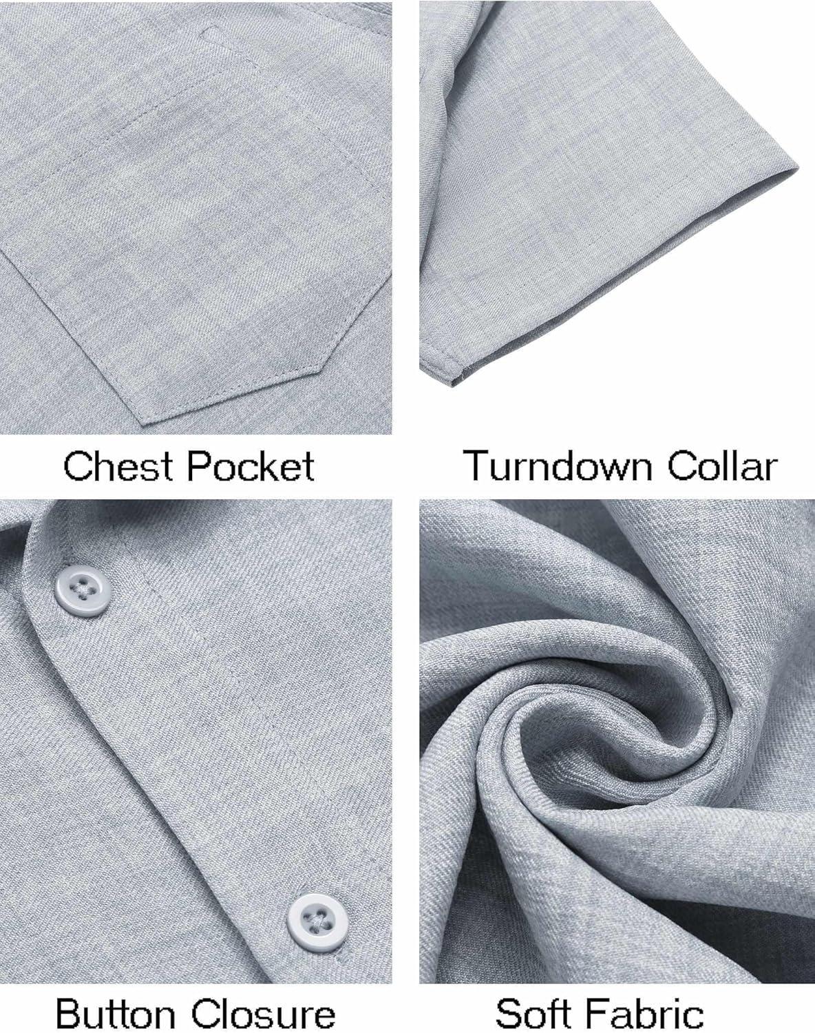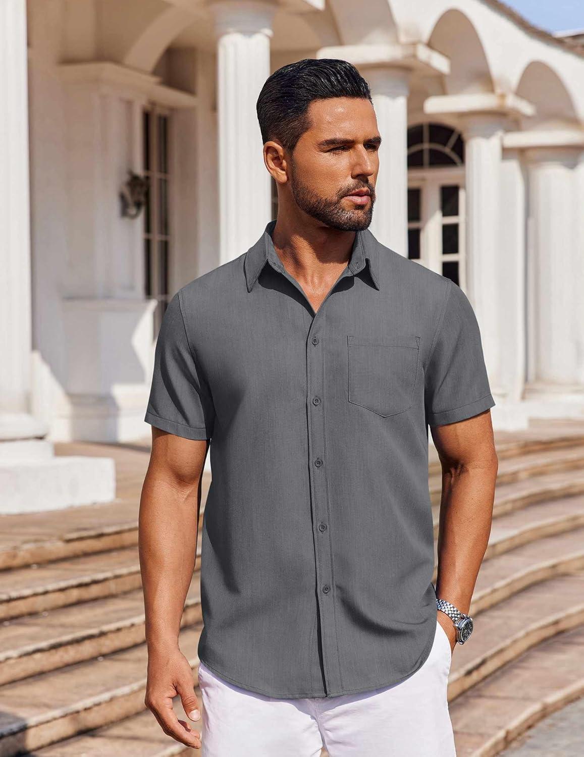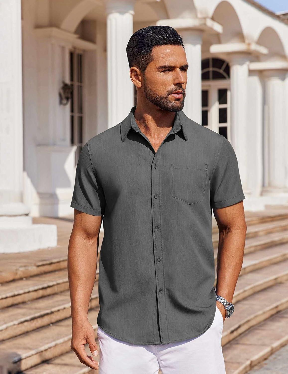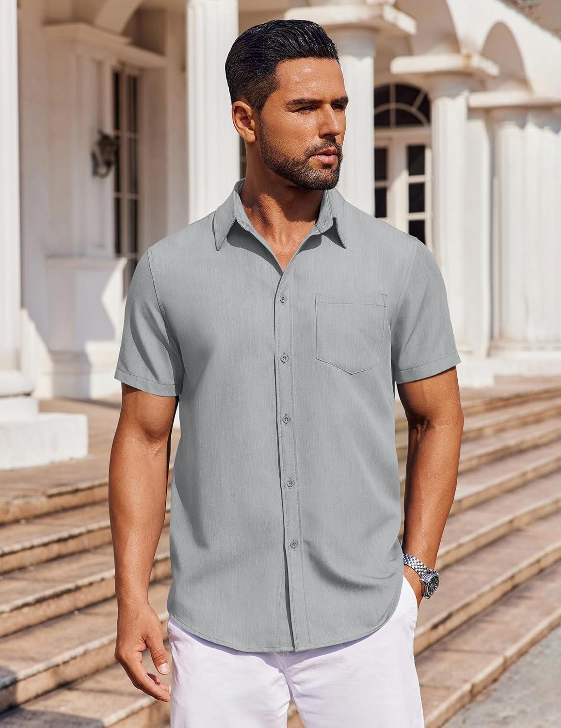 COOFANDY Mens Short Sleeve Button Down Shirts Casual Dress Shirt Untucked Shirts with Pocket(Grey)