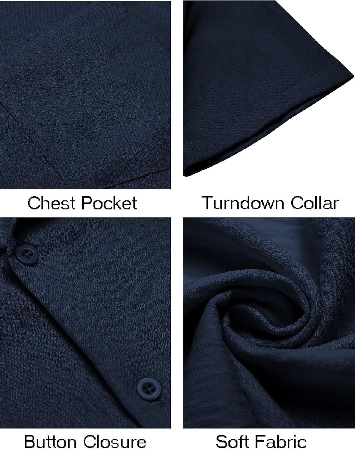 COOFANDY Mens Short Sleeve Button Down Shirts Casual Dress Shirt Untucked Shirts with Pocket(Navy Blue)