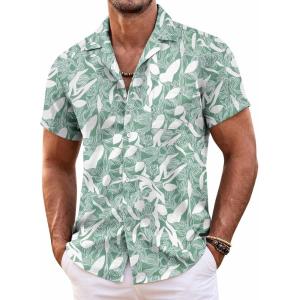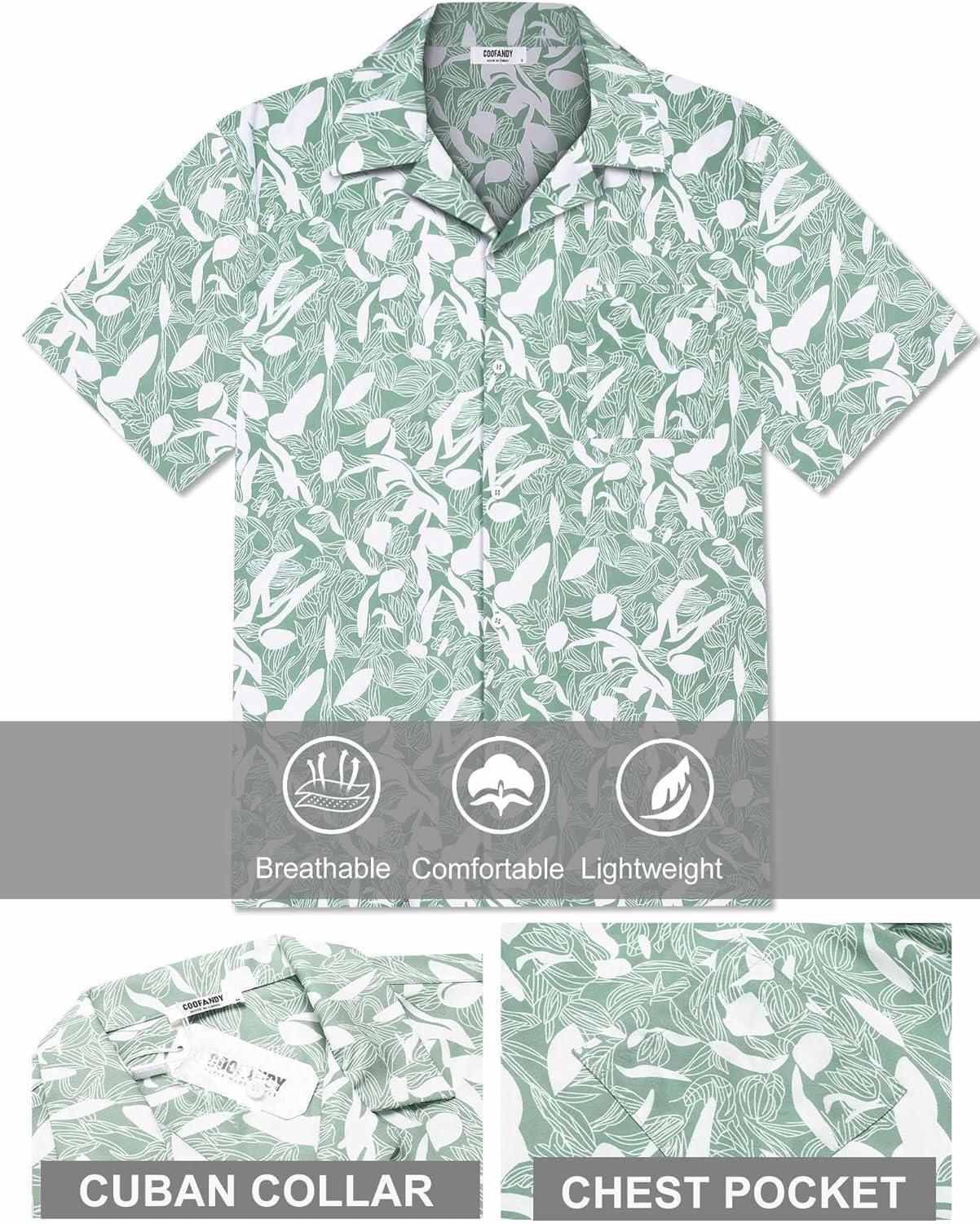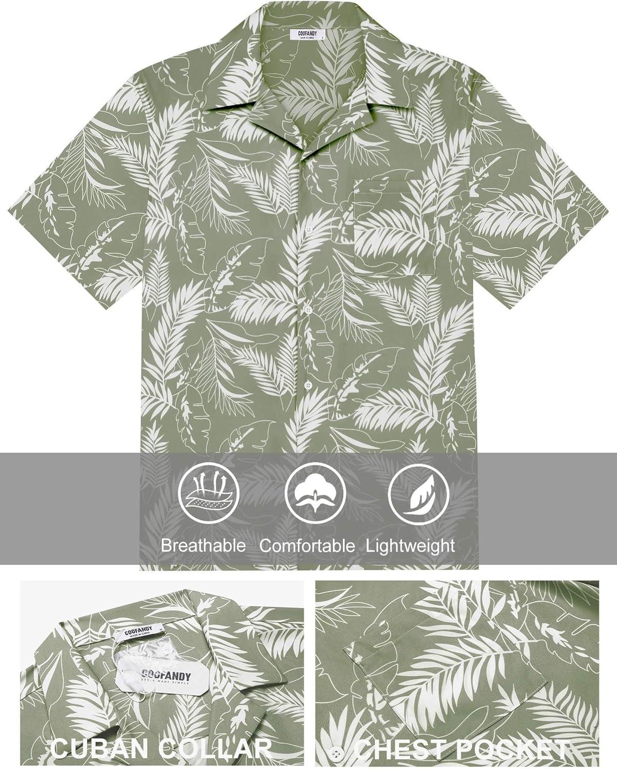 COOFANDY Mens Hawaiian Shirt Short Sleeve Floral Button Down Shirts Tropical Summer Beach Shirts Camp Collar Shirt(Green- Leaf)