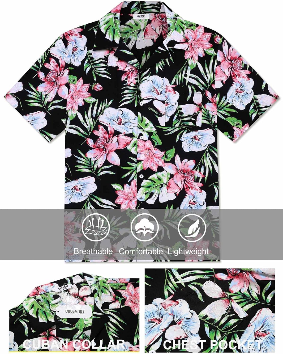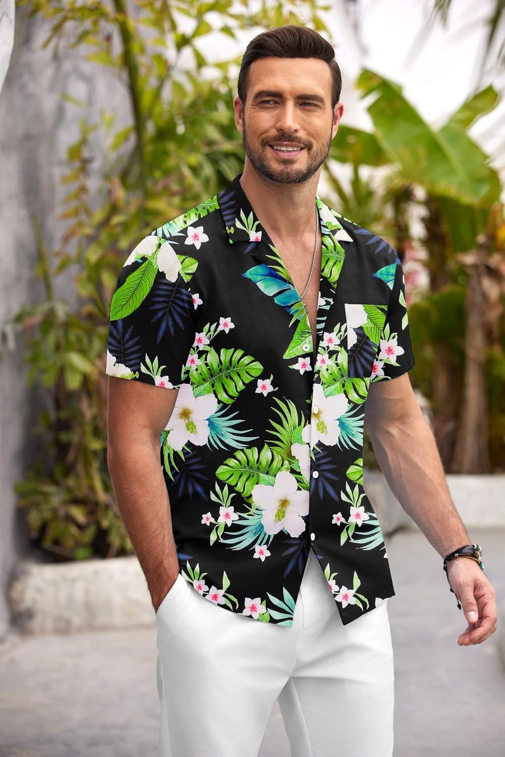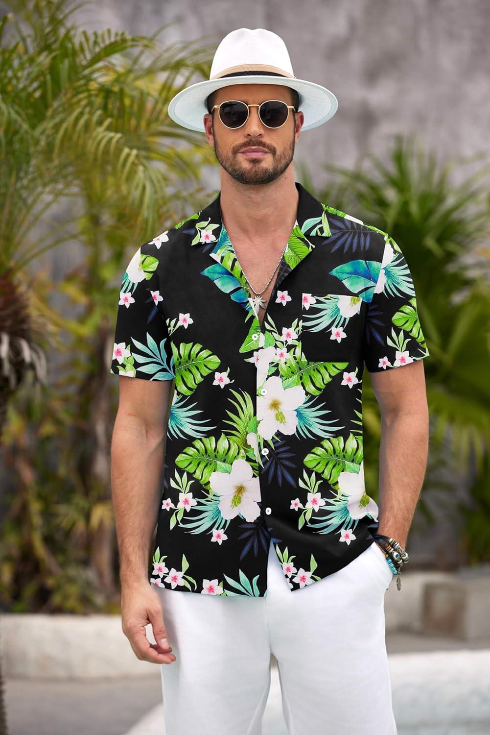 COOFANDY Mens Hawaiian Shirt Short Sleeve Floral Button Down Shirts Tropical Summer Beach Shirts Camp Collar Shirt(Black)