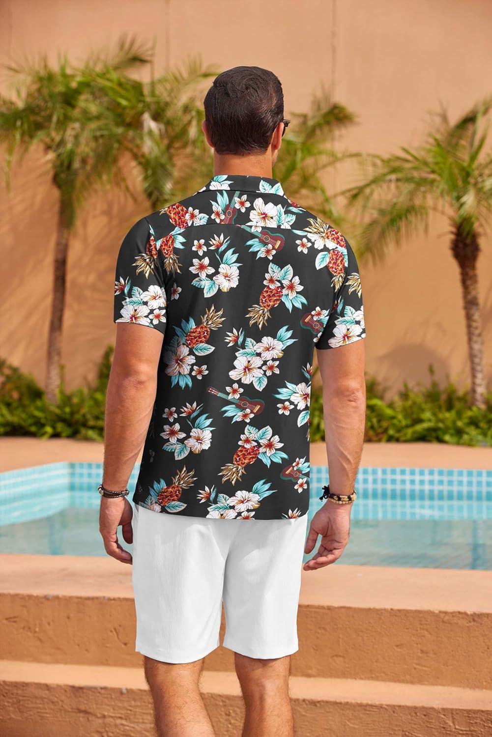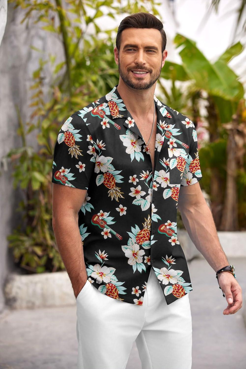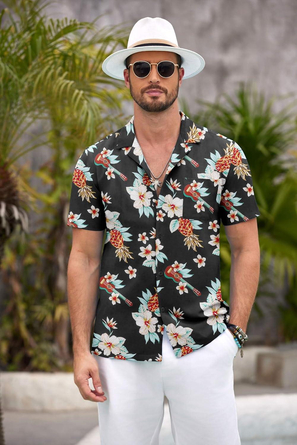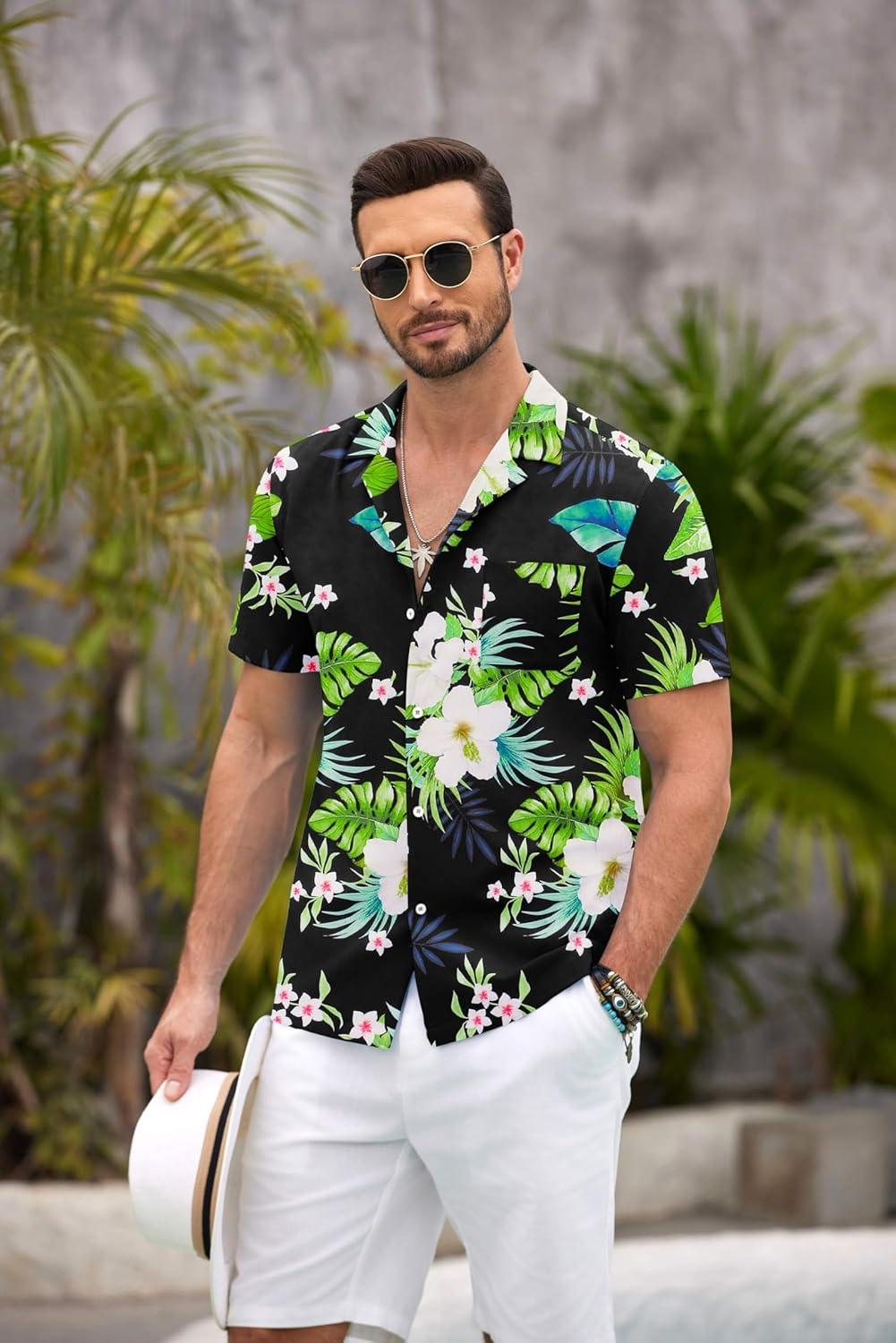 COOFANDY Mens Hawaiian Shirt Short Sleeve Floral Button Down Shirts Tropical Summer Beach Shirts Camp Collar Shirt(Black)