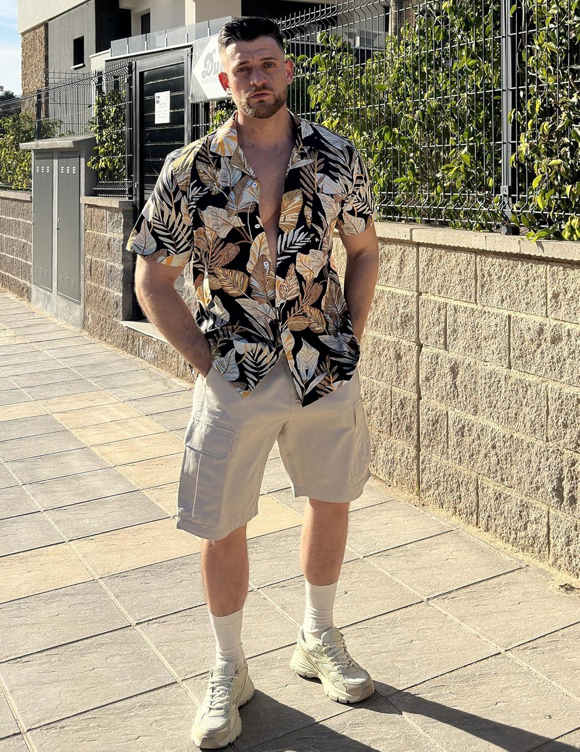 COOFANDY Men’s 2 Pieces Casual Beach Outfits Short Sleeve Button Down Shirts Summer Short Set(A-khaki)