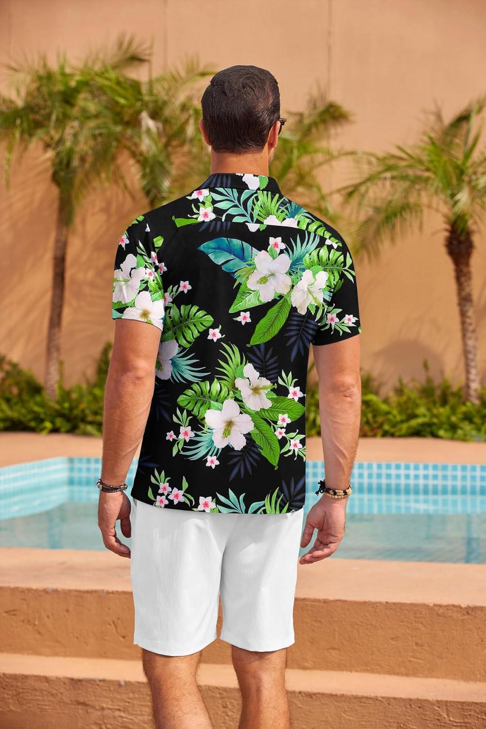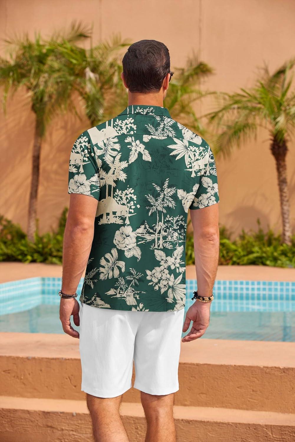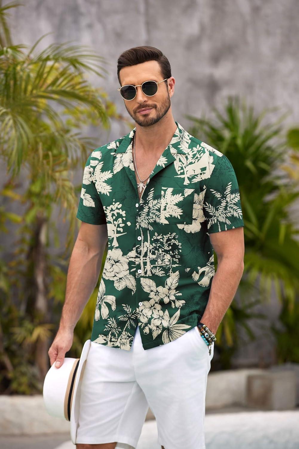 COOFANDY Men’s Hawaiian Shirt Short Sleeve Casual Button Down Tropical Summer Beach Aloha Shirts(Green-white Flowers)