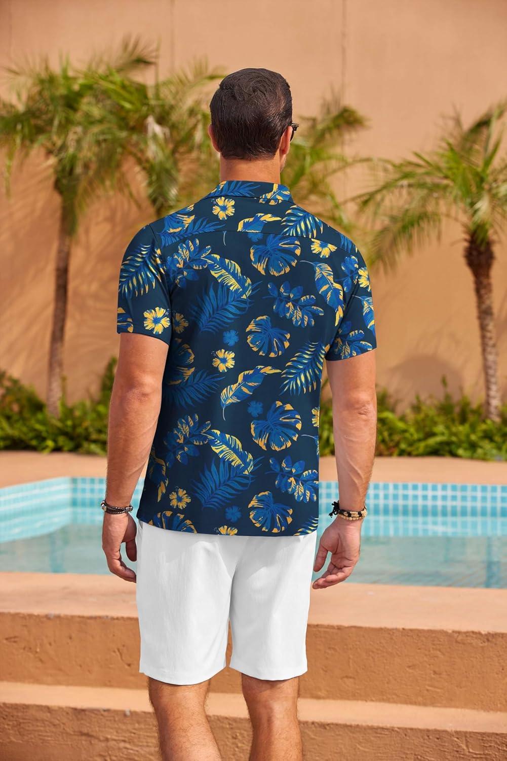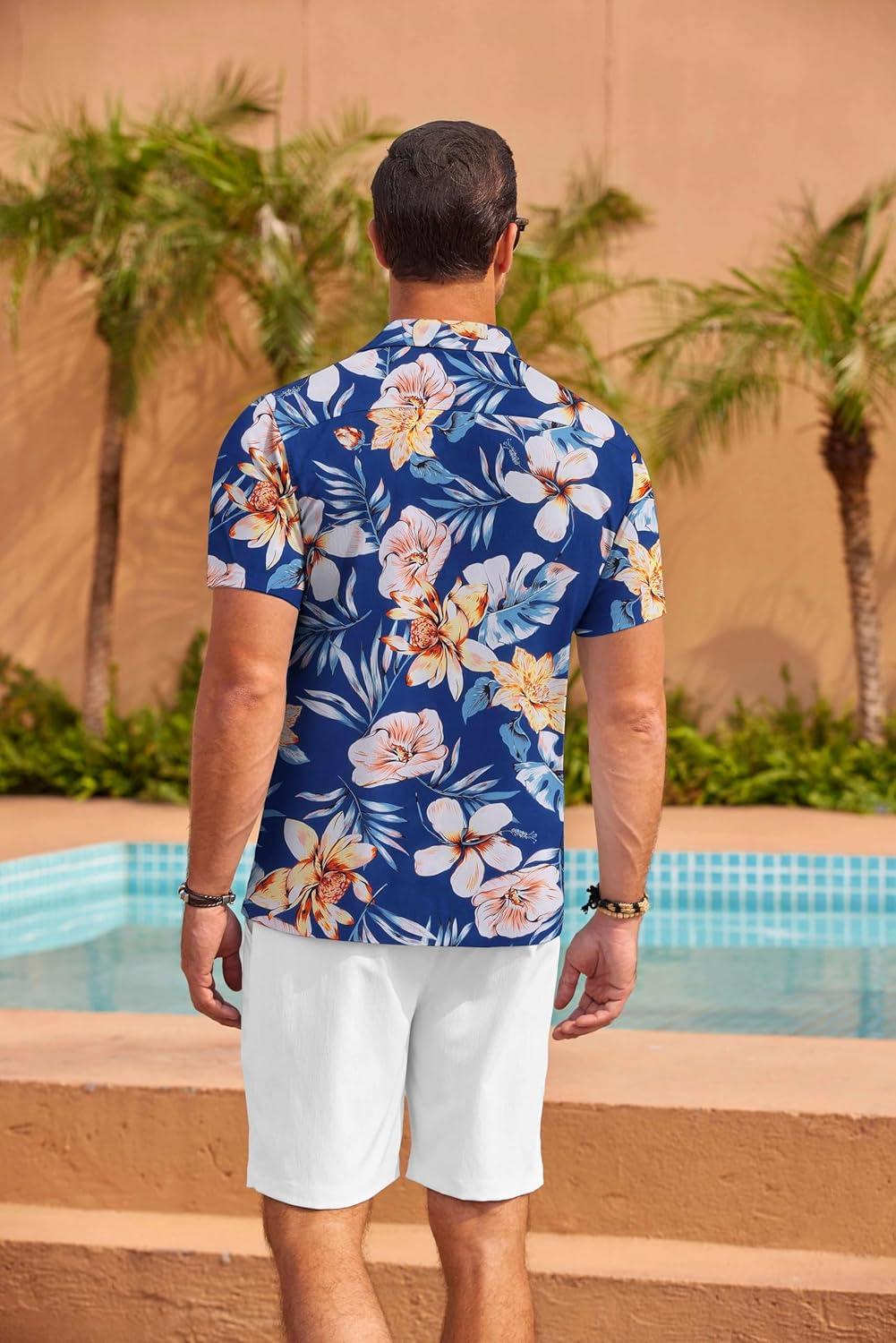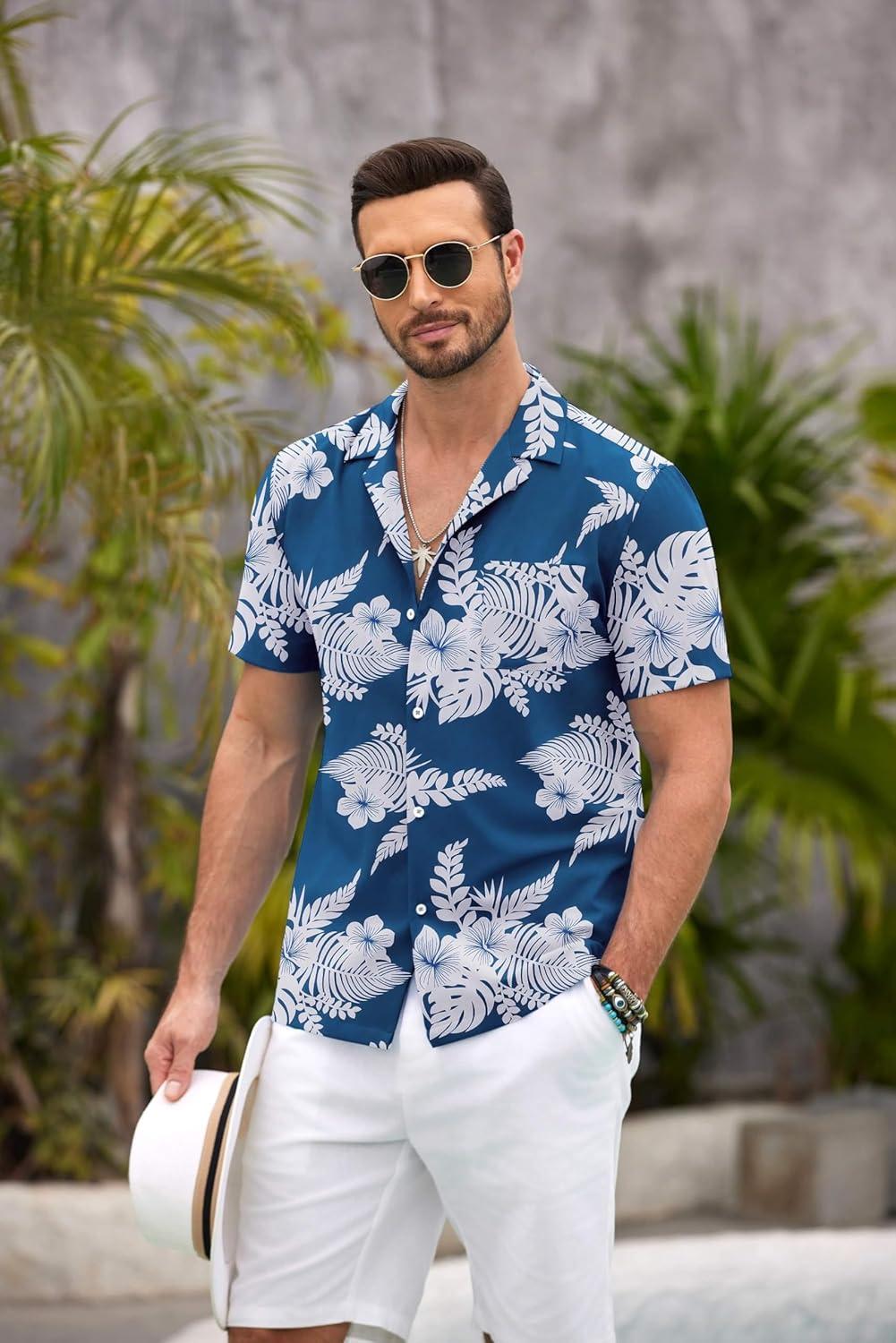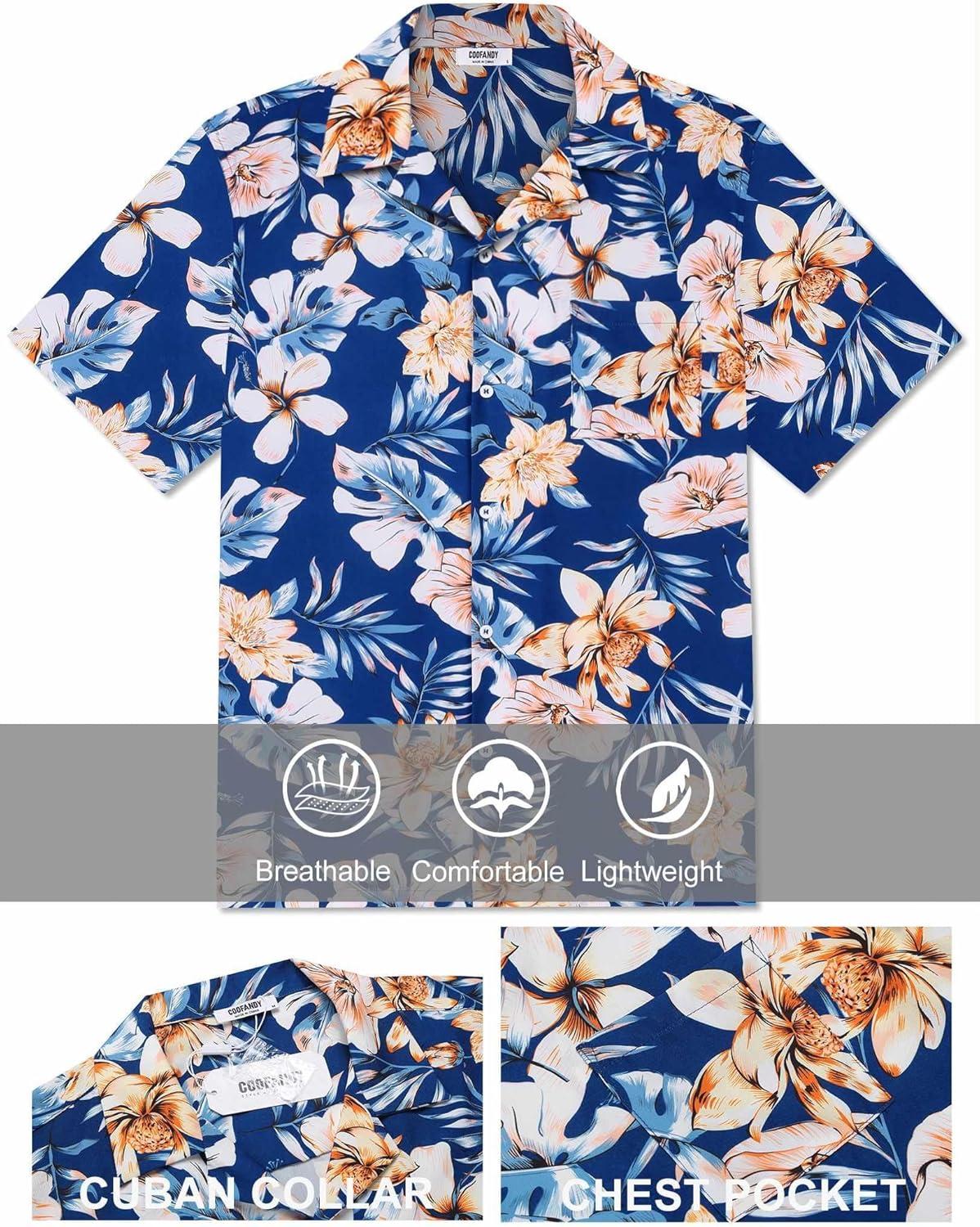 COOFANDY Mens Hawaiian Shirt Short Sleeve Floral Button Down Shirts Tropical Summer Beach Shirts Camp Collar Shirt(Blue)